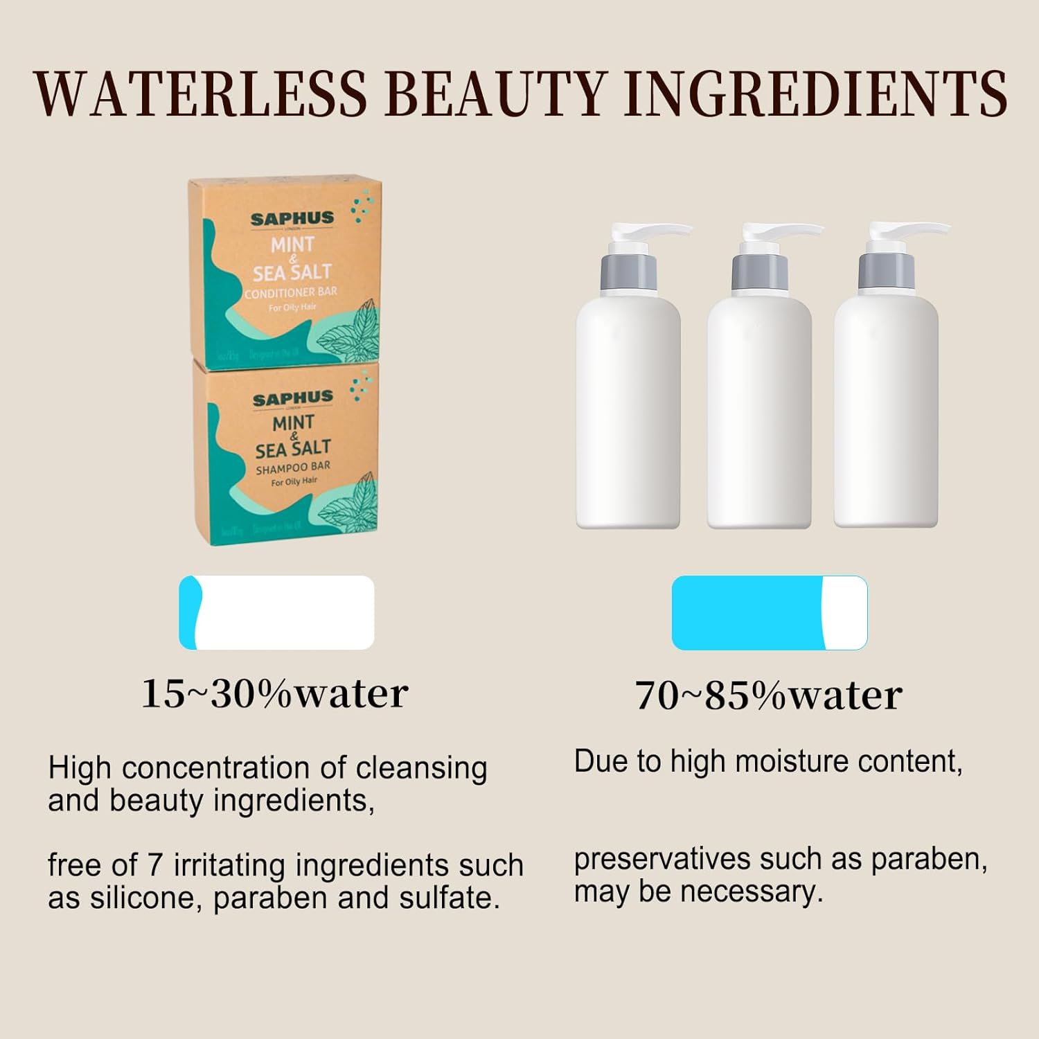 - zero waste packaging: we offer our customers sustainable products made with gentle formulas that change the way of beauty by providing better quality alternatives to traditional products that come in plastic bottles shampoo and conditioner. Beauty does not have to come in plastic.