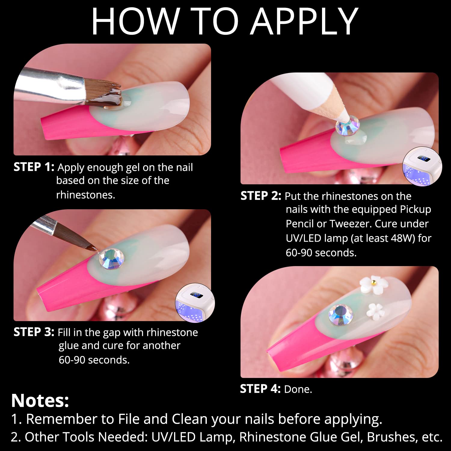 - EASY TO USE -- The back of the gemstones is flat and is easier to be applied to the nails. We also equip the package with convenient dotting pen and tweezer for your application.