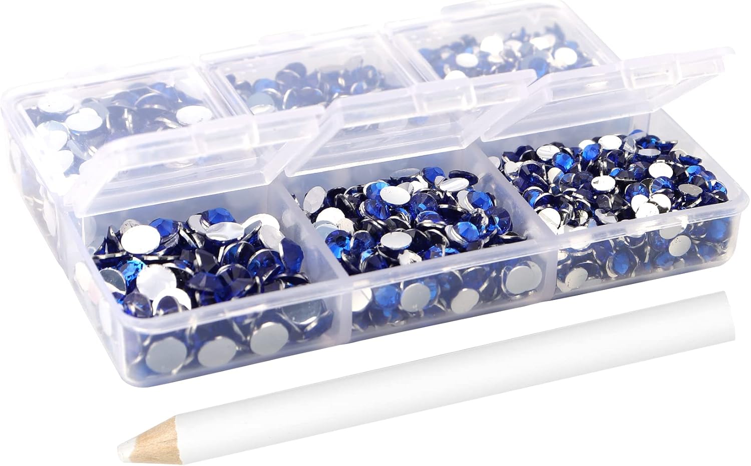Multi Size 3mm 4mm 5mm Rhinestones Set for Nails Crafts Sapphire Non Hotfix Rhinestones Nail Gems Rhinestone Round Flat Back Resin Rhinestone for Makeup Clothes Shoes Eyes Bottles Crafts