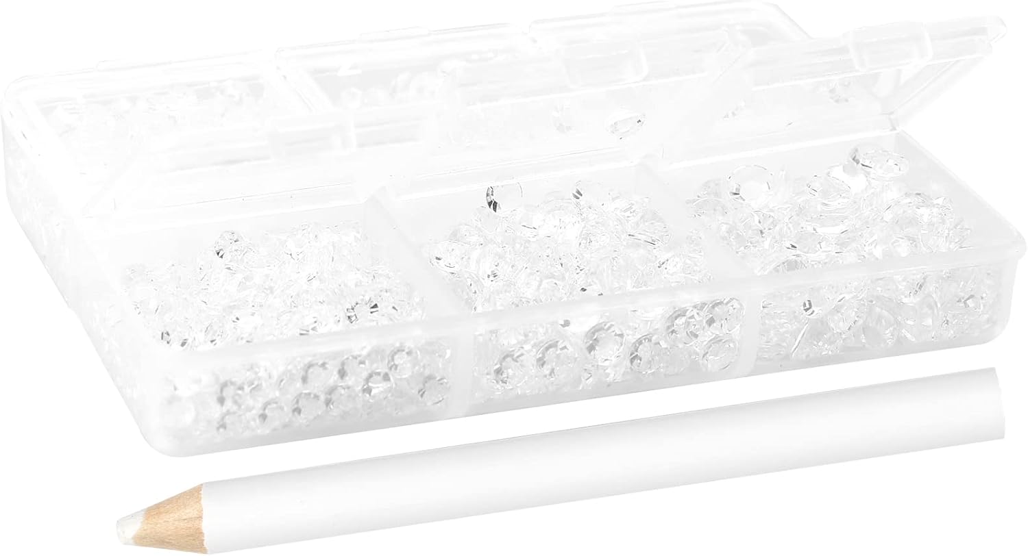 - 3 Sizes Rhinestones Set with Pick Up Pen: 2050 pcs per box. Round flat backs &Non Hotfix, SS10 (3mm) 1100PCS, SS16 (4mm) 600PCS / SS20(5mm) 350PCS.