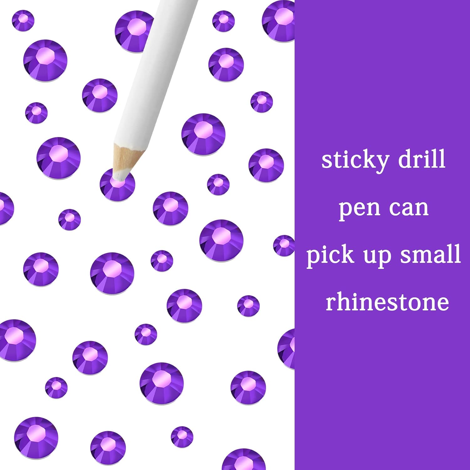 - 3 Sizes Rhinestones Set with Pick Up Pen: 2050 pcs per box. Round flat backs &Non Hotfix, SS10 (3mm) 1100PCS, SS16 (4mm) 600PCS / SS20(5mm) 350PCS.