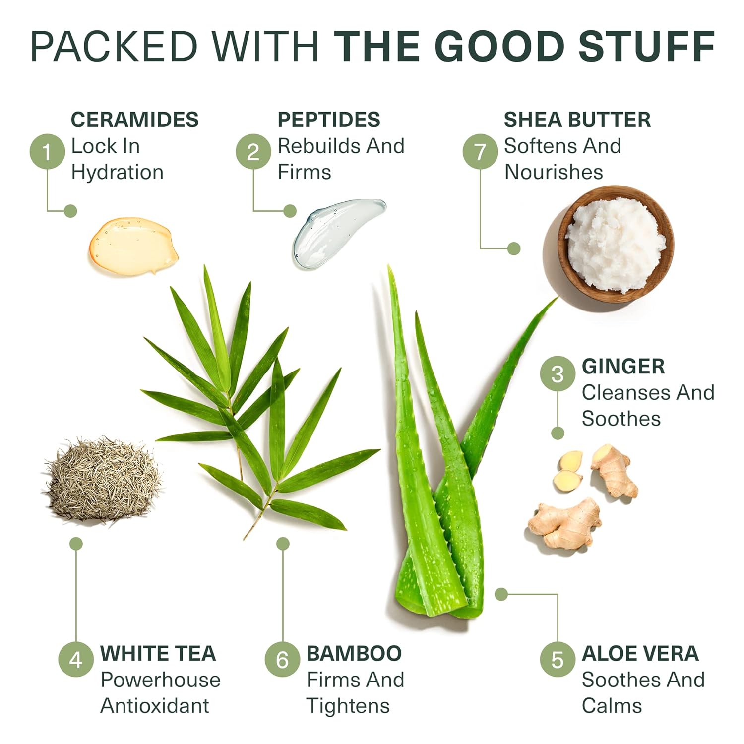 Botanic Tree Hydrating Glycolic Acid Cleanser - Exfoliating Face Wash - Face Cleanser for Women - Also with Ceramides & Peptides, Gently - for Dewy Bouncy Skin - 6oz