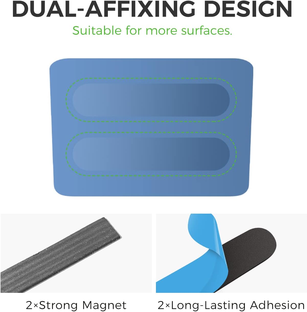 - DUAL AFFIXING DESIGN: Dry erase accessory tray with optional magnetic and adhesive stickers. Easily attaches to magnetic surfaces such as whiteboards and refrigerators and various nonmagnetic surfaces, too.