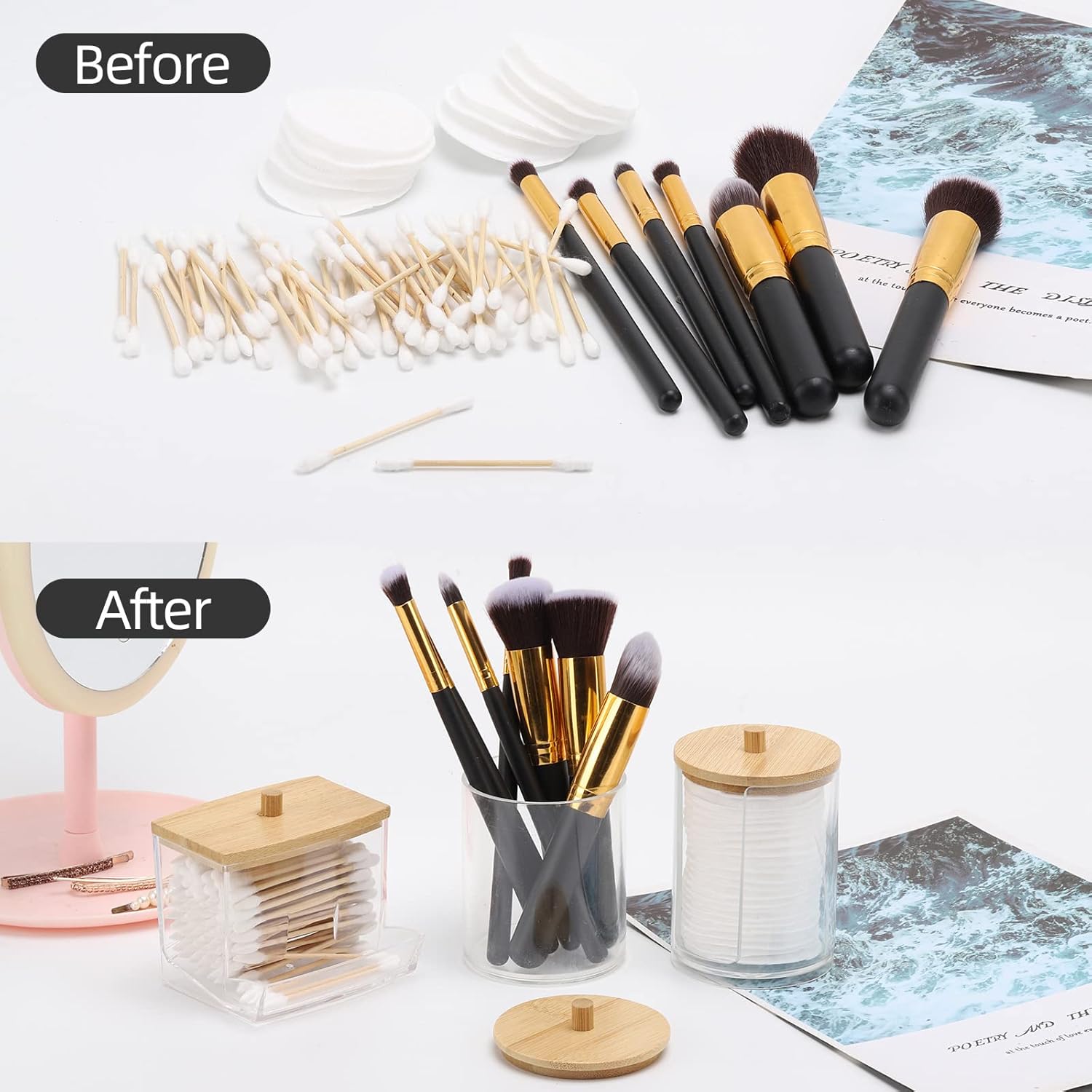 - 3 jars can be used as pad holder, cotton swabs holder and tiny things organizer