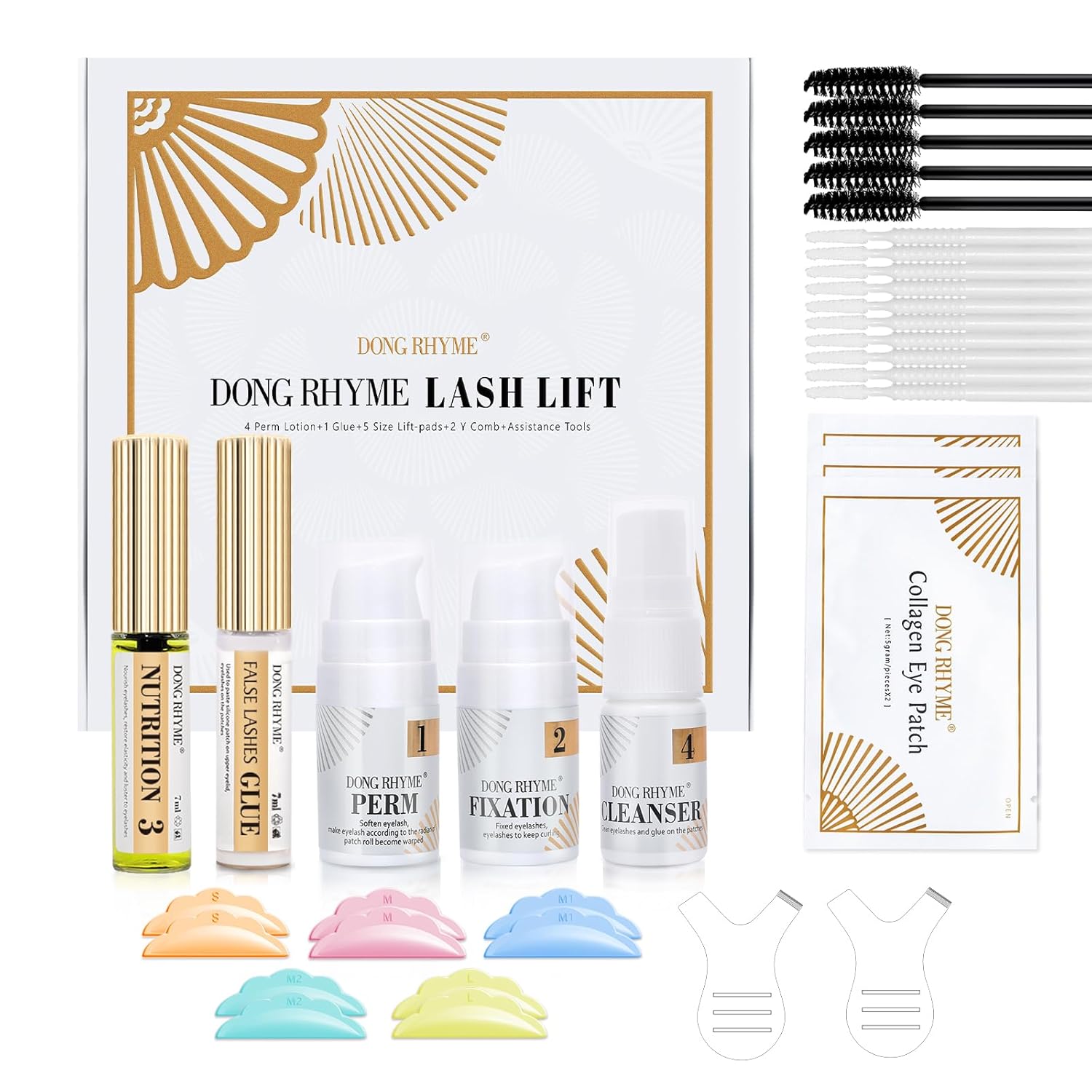 - DONG RHYME Collagen Lash Lift Kit: Include 10% collagen ingredient, A service that lifts, lengthens, and curls your natural lashes without damage. Without extensions 100 percent your natural lashes. Your hair, including your eyelashes, are made of keratin, this upgrade formula will help protect the integrity of your lashes while undergoing the treatment.