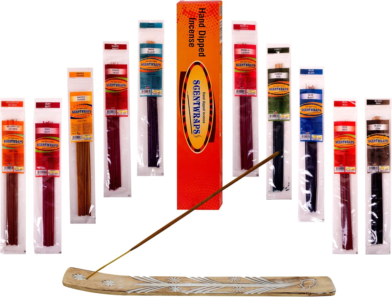 Hem Incense Sticks -10 Scents Veriety Pack 12 Sticks Each-11 Inches, 120 Total Stick- with Natural Inscent Holder, Aromatic Assorted Hand Dipped Insense-Sticks