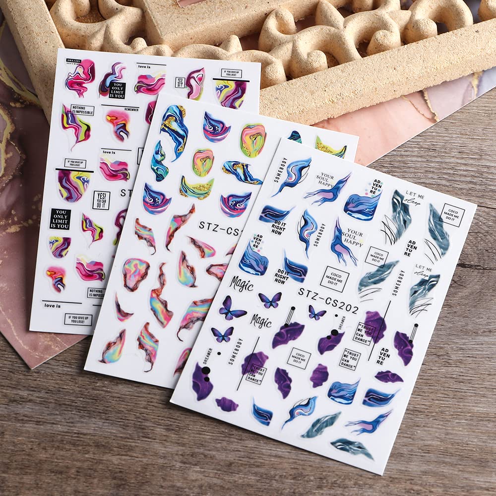 - Colorful Nail Decorations--3D watercolor smoke effect colorful nail stickers, let your nails get rid of monotony, perfect for fingernails, toenails, and false nails, both for adult women and teenage girls.