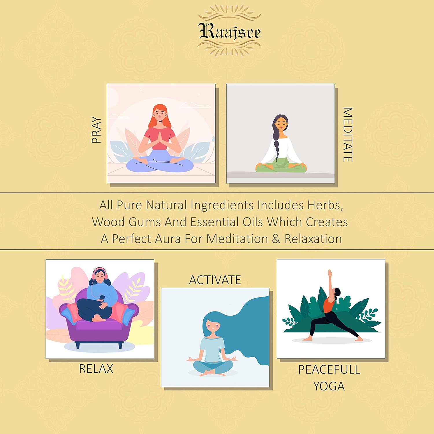 - USAGE - These organic incense sticks are perfect for Everyday use, Worshipping, Church incense, Wedding Events, Aromatherapy, Spa, Reiki, Meditation, Healing, Yoga, Sensual Therapy, Positivity, Relaxation, etc. Our organic incense gives you a feeling of compassion, well-being, inner peace, relaxation, centeredness, increased vitality, and embodiment of oneself to raise your vibrations