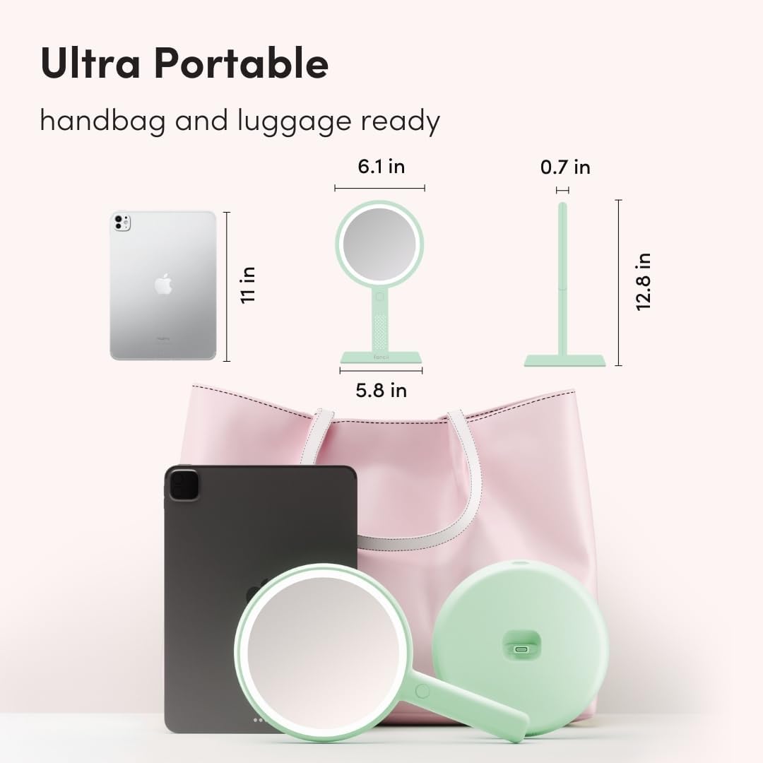 - Handheld & Hands-Free – Use Cami as a handheld mirror or attach it to the included stand for a vanity setup. The stand tilts up to 30° for hands-free, precise makeup and grooming.