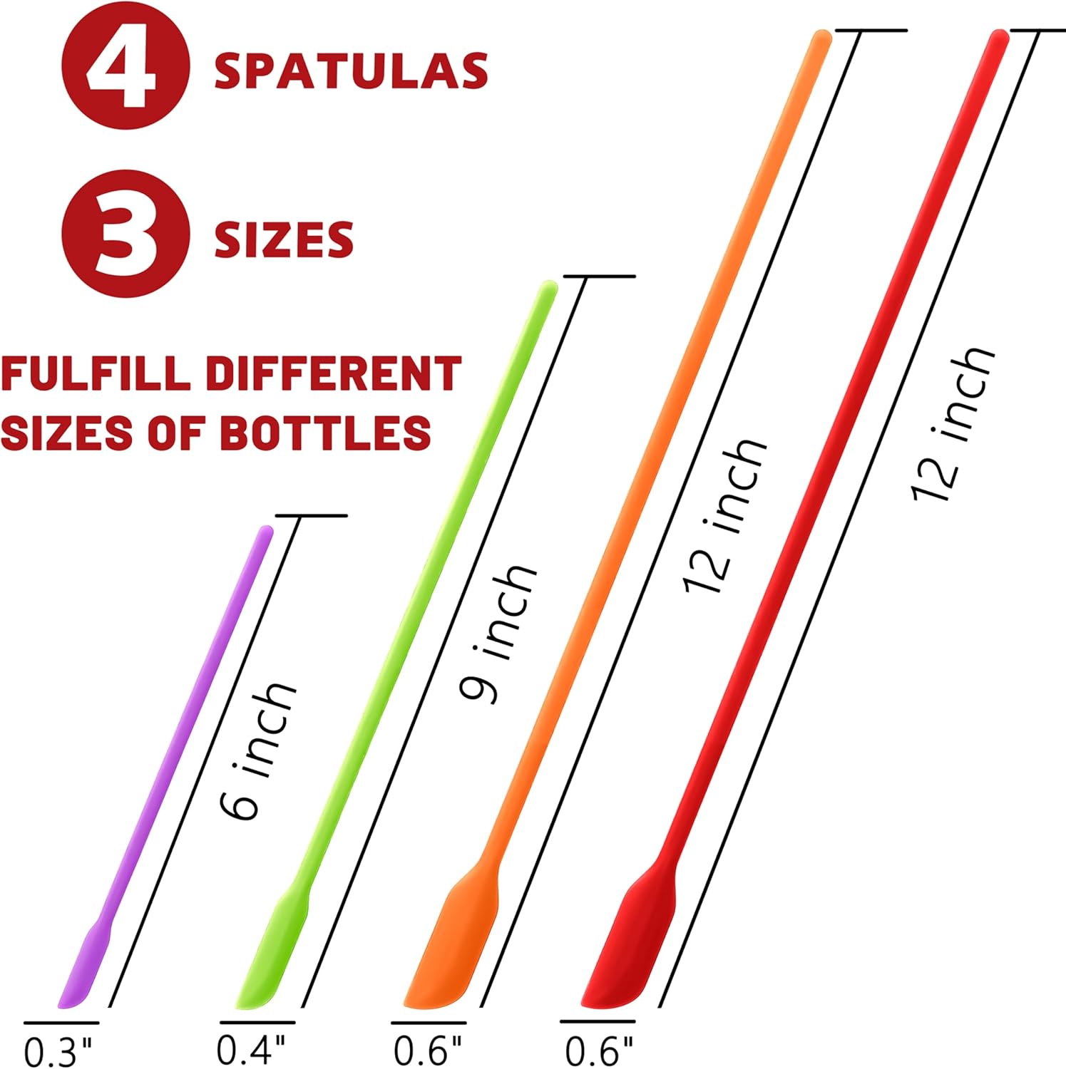 - FLEXIBLE SPATULA - Anaeat silicone spatulas designed with narrow soft heads and long body that can reach many bottles and jars to get every drop out of your container. UPGRADED PROPER BALANCE BETWEEN FLEXIBLE AND STURDY