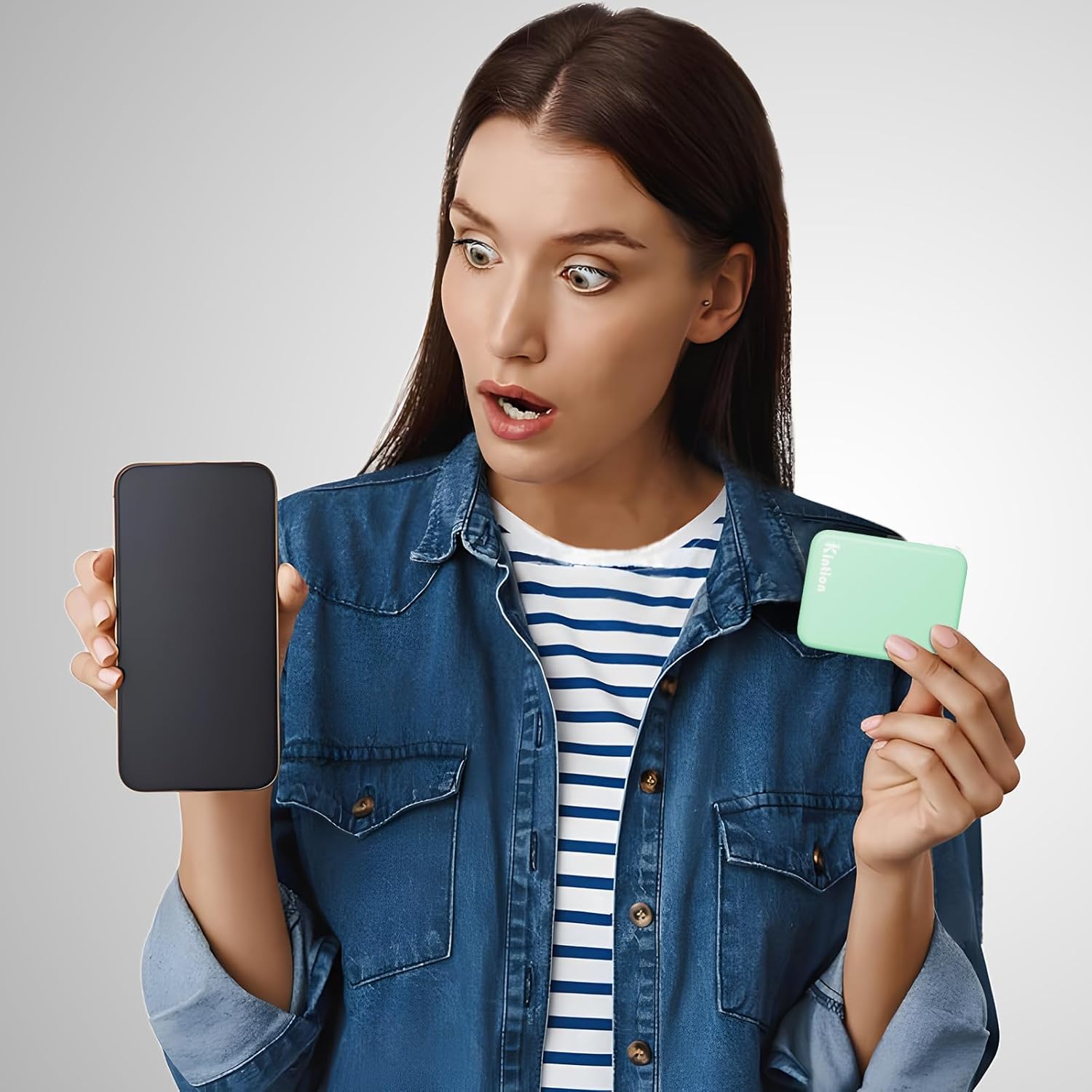 Kintion Rechargeable Pocket Mirror, Double Sided 1X/3X Magnification Compact Vanity Mirror, 3 Color Lights, Dimmable, Small Portable Wallet Mirror, Lighted Travel Mirror for Women Gifts, Cyan