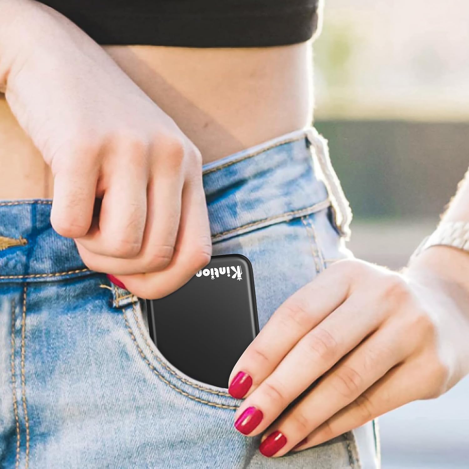Kintion Rechargeable Pocket Mirror, Double Sided 1X/3X Magnification Compact Vanity Mirror, 3 Color Lights, Dimmable, Small Portable Wallet Mirror, Lighted Travel Mirror for Women Gifts, Black