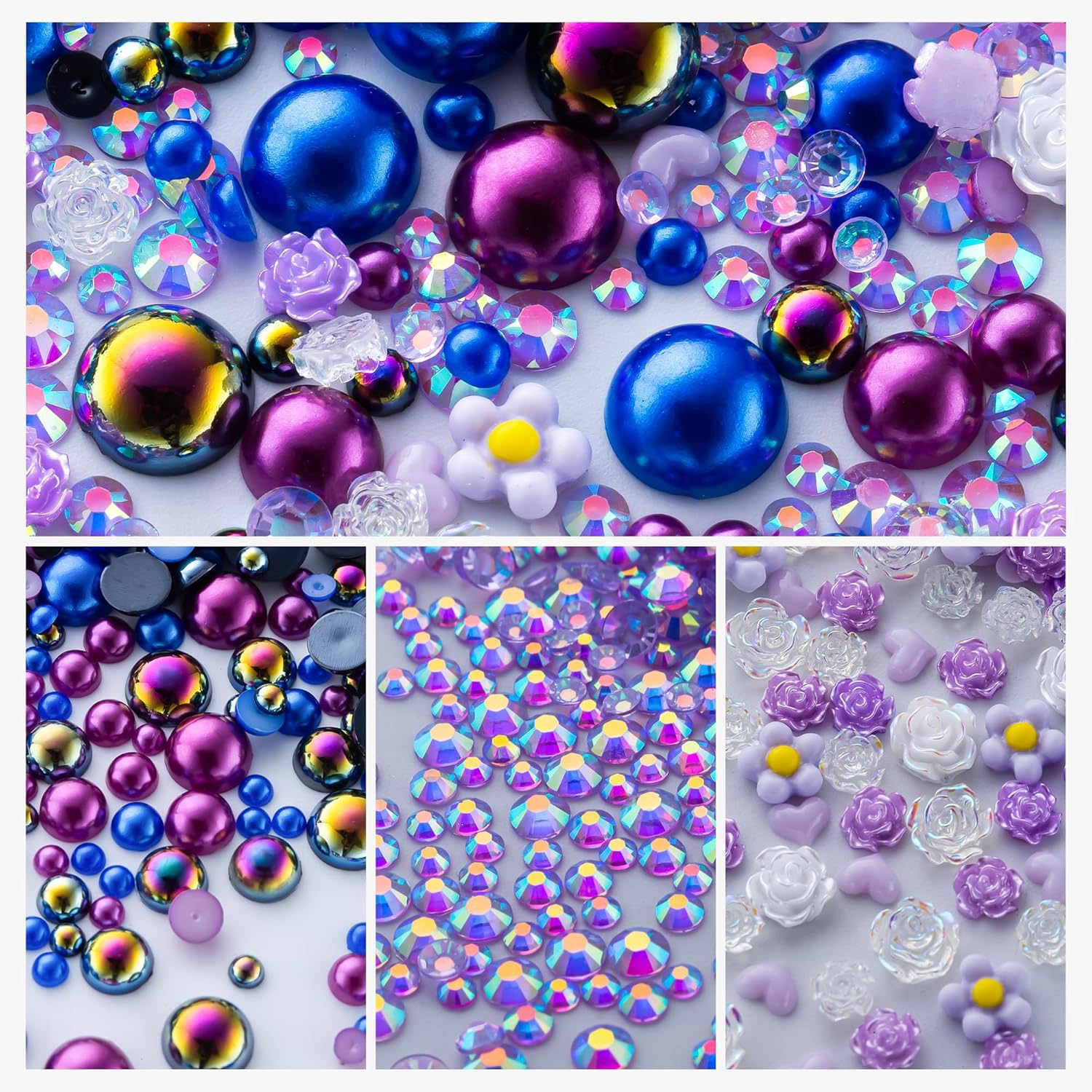 - Assortment Sizes: The flatback half pearls come in a mixture of colors and sizes of 3/4/5/6/8/10mm. The flatback rhinestones are resin rhinestones in sizes of 2/3/4/5/6mm. These mixes are such a great way to get an assortment of colors and sizes without having to buy each item individually