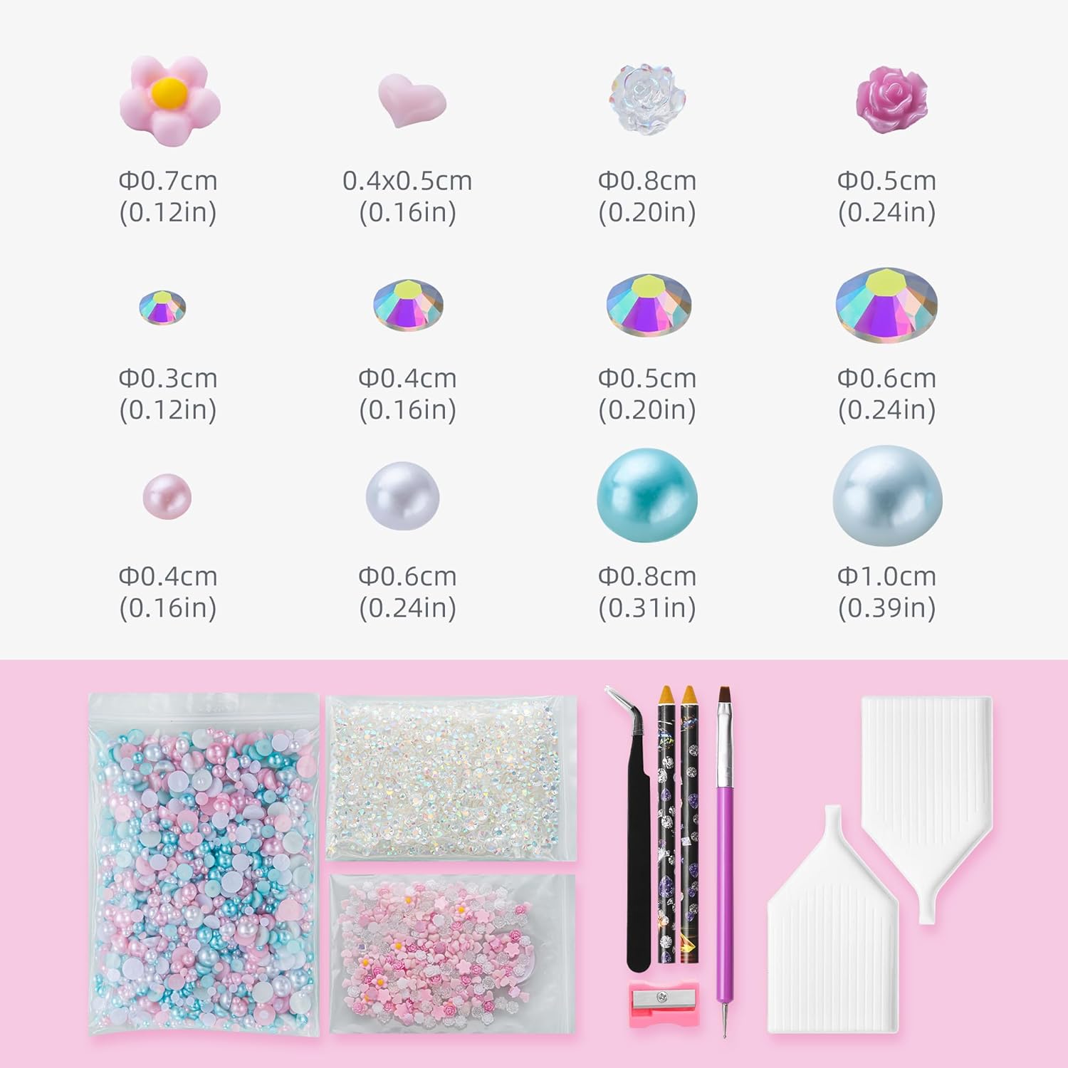 - Special Gift Decoration: These mix rhinestones and pearls are widely used for craft, nails, tumblers, fabric, greeting cards, invitations, jewelry making,etc. ou can DIY a unique gift for Christmas, Valentines Day, Mothers Day, Anniversary Day and Birthday gift to your family and friends. Or DIY a special gift for your friends and family.DIY your life,enjoy your life