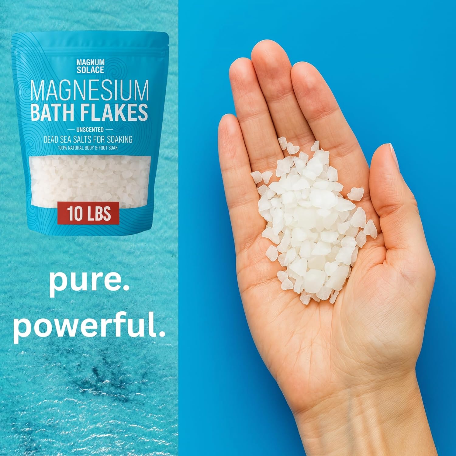 Magnesium Flakes for Bath - Magnesium Chloride Flakes - Dead Sea Salts for Soaking, 10 LBS
