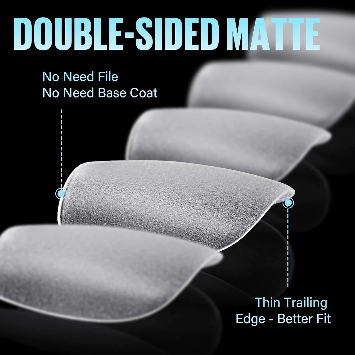 - 【Pre Buffed Nail Tips】The upgraded pre-buffed nail tips give you the privilege of "no file, no base coat". Protect your nail beds while saving time. Double-sided matte acrylic nails have stronger adhesion and can be pasted more firmly.