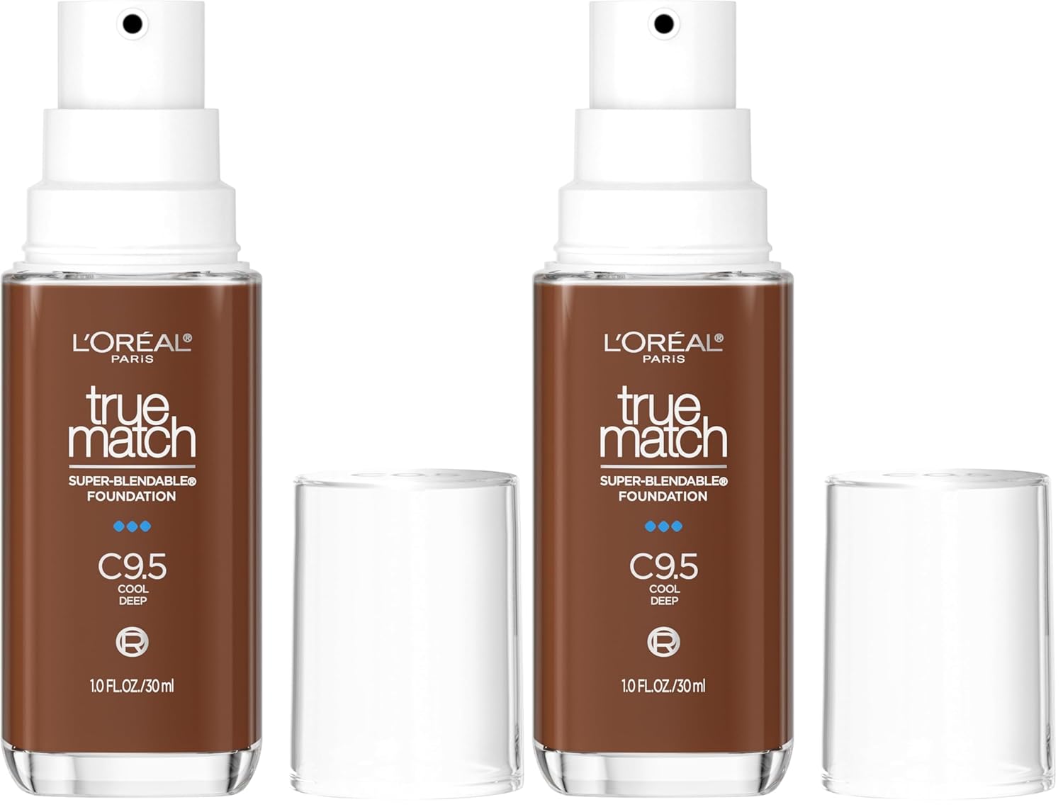 L'Oréal Paris True Match Super-Blendable Foundation, Medium Coverage Liquid Foundation Makeup with SPF 17, C9.5, Deep, 1 Fl Oz (Pack of 2)