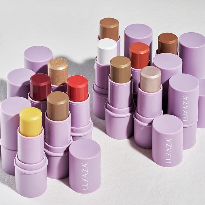 - LUXAZA 4 Pcs Makeup Stick Set: Contains a full-pigmented cream stick with a contouring bronzer stick, highlighting stick, blush stick, and moisture stick in the makeup set. They're multipurpose and you can use them all over your face for a natural-looking and radiant complexion, leaving your skin that glassy. With buildable coverage and excellent blend-ability.The LUXAZA makeup stick allows you to define and illuminate the skin