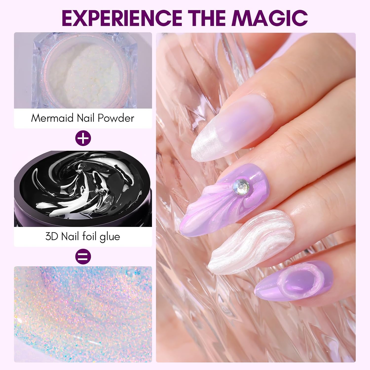 - Create 3D Effects: The foil glue gel for nail allows for a 3D effect when transferring nail foils stickers. It can design Linear / Shell / Ripple pattern etc. with nail brush and use with chrome powder for nails, making the nail design more dynamic and eye-catching.