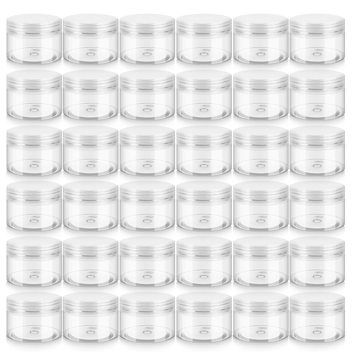 36 Pack 4 OZ Plastic Jars with Lids, BPA Free, Reusable, Refillable Transparent Cosmetic Containers for Bath Salts, Cosmetics, Powders, Beauty Product and Small Accessories - White