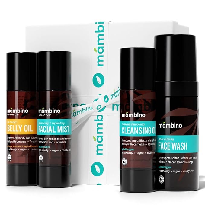 Third Trimester Set – All Natural Skincare Pregnancy Gift Box – Anti-stretch mark Belly Oil, Rose Facial Mist, Cleansing Oil, Face Wash - Mambino Organics
