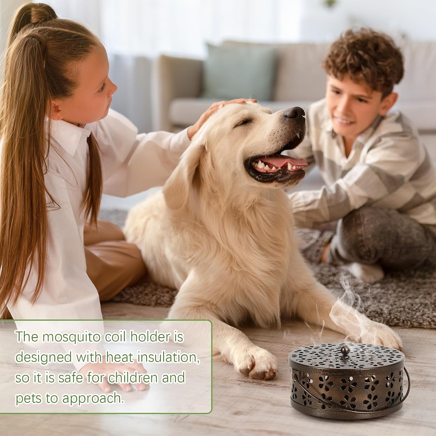 Portable Iron Mosquito Coil Holder with Handle Round Heat-Resistant Incense Holder (2 Pack Bronze)