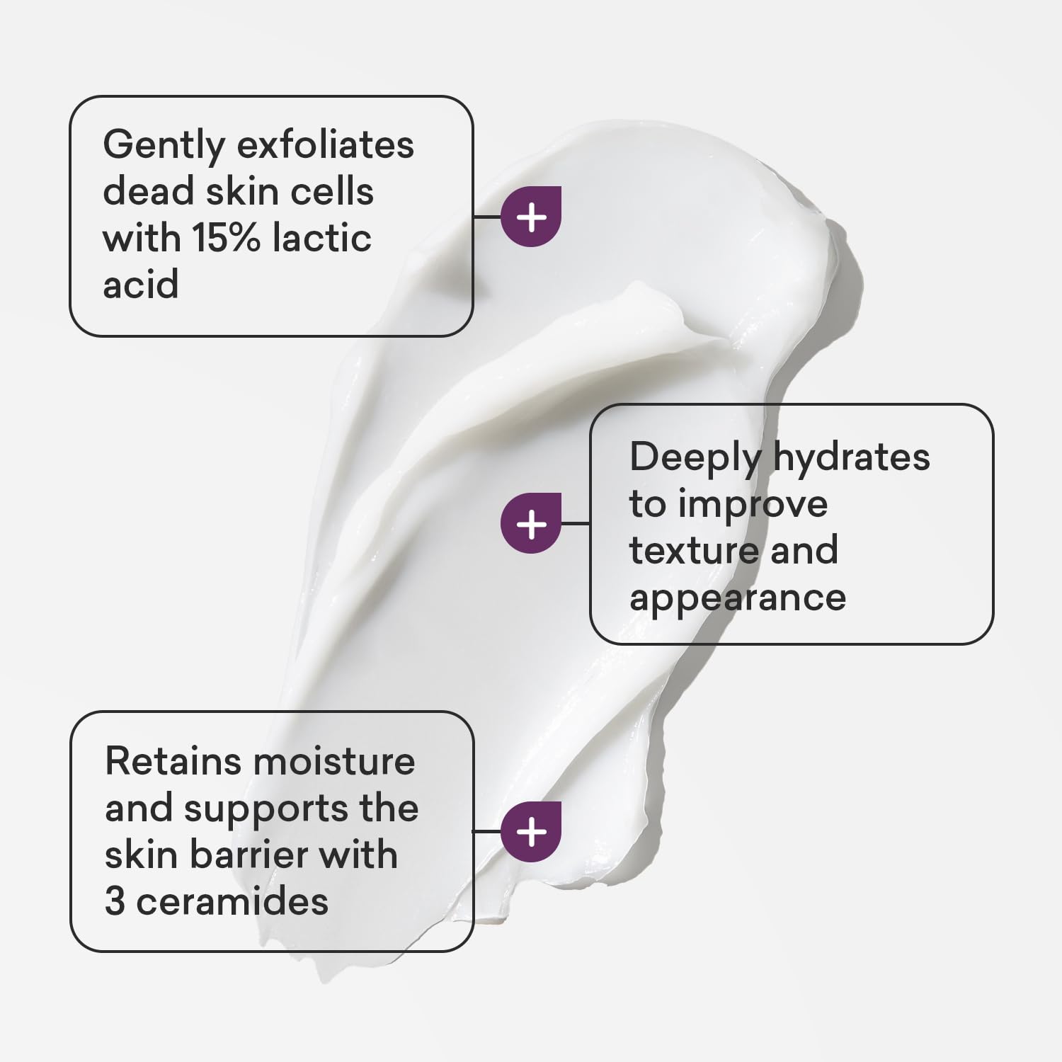 - Our formula: AmLactin’s crepe skin firming cream uses 15% lactic acid, a gentle yet effective AHA, to exfoliate dead skin cells and promote skin cell turnover; ceramides retain moisture and support the skin barrier to restore natural radiance