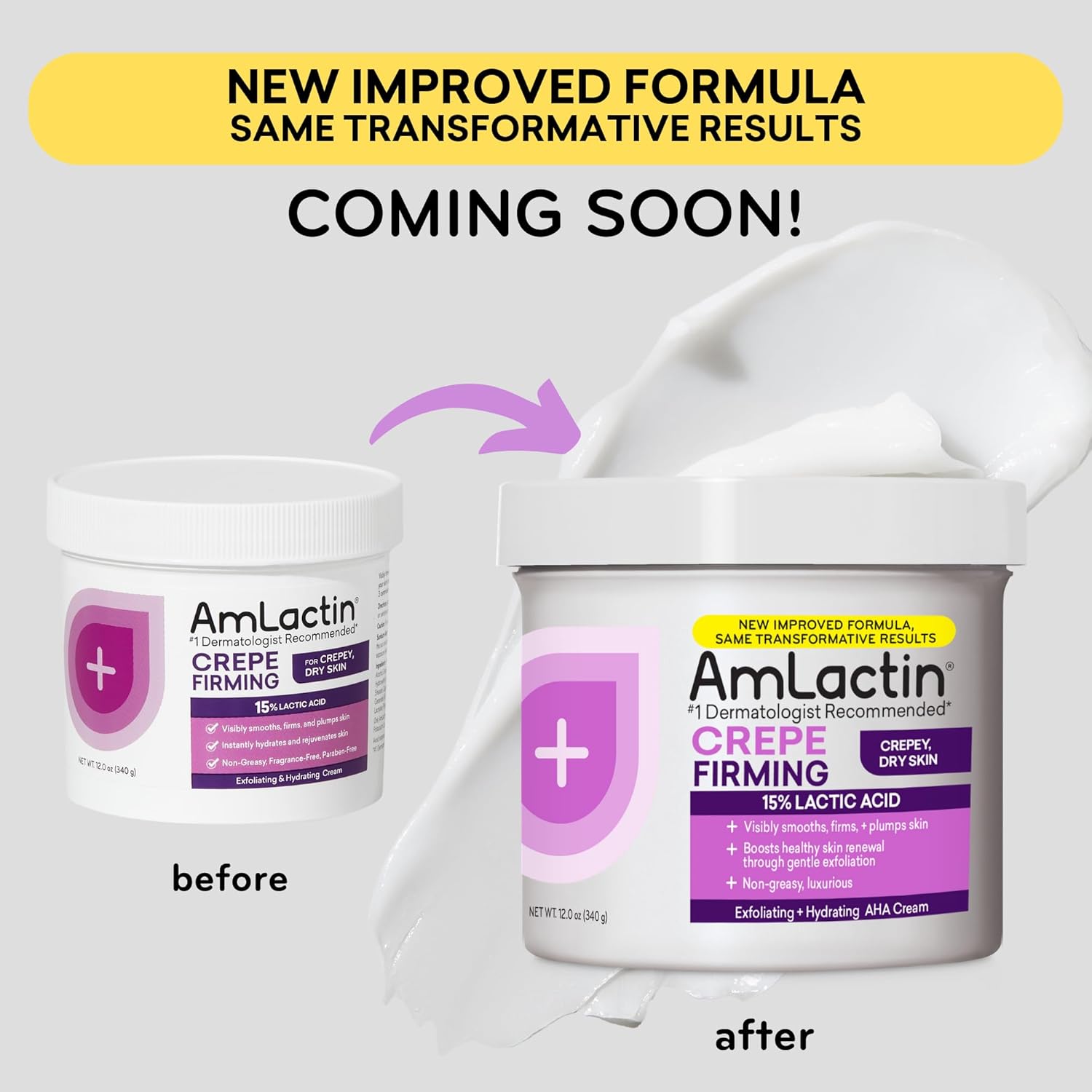 AmLactin Crepe Firming Cream - 12 oz Body Cream with 15% Lactic Acid - Exfoliator and Moisturizer for Crepey, Dry Skin (Packaging May Vary)
