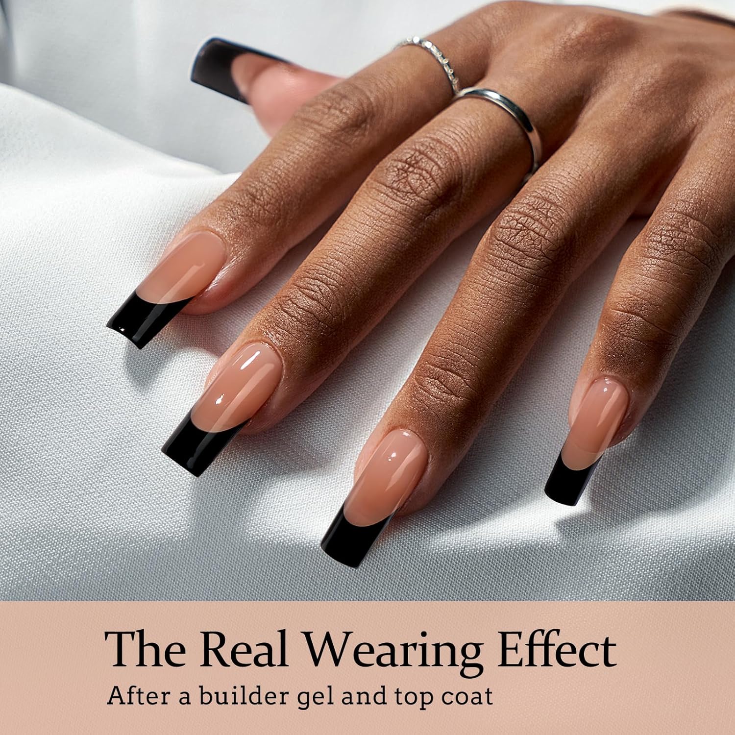 BTArtboxnails XCOATTIPS French Tip Nails - Long Press on Nails, Square Nail Tips Black, French Tip Press on Nails, Soft Gel False Nail Tips, Soak Off Acrylic Fake Nails