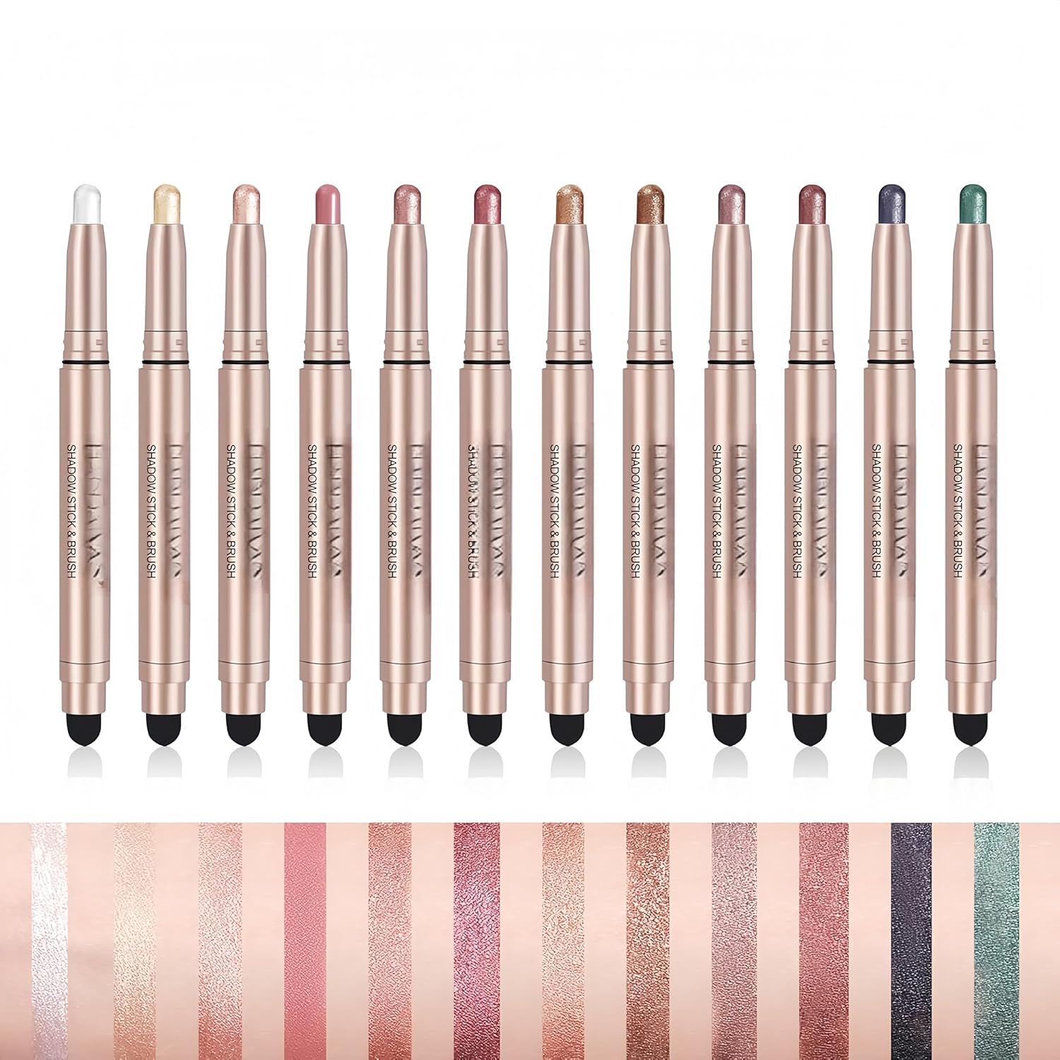 - 👀【12 Colors Eyeshadow Set】This highly pigmented eyeshadow stick come with 12 colors, from warm to cool color, elegant pink to sexy brown eyeshadow, advanced gray to bright gold, can be used to give you daily and luminous makeup.
