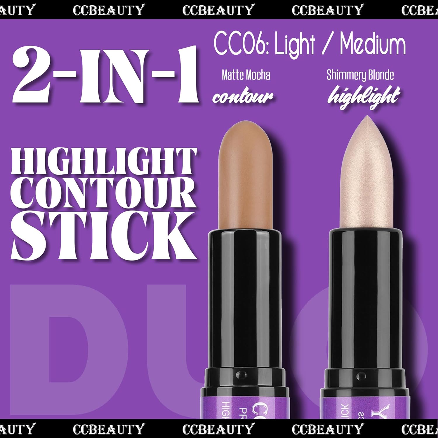- ❤CCBEAUTY 2PCS CONTOUR KIT WITH BLUSH - 2-in-1 contour & shimmer highlight stick can perfect to cover FAIR-LIGHT-MEDIUM skin tones. Comes with Blusher stick can perfectly glow your fresh,healthy look on-to-go due to portable Dual-ended design! The light end is good for blendable HIGHLIGHT such as forehead,cheek,neck,and outer corner of the eye.While the deep end as BRONZER for contouring makeup, perfectly outline various sculpted and 3D delicated Look.