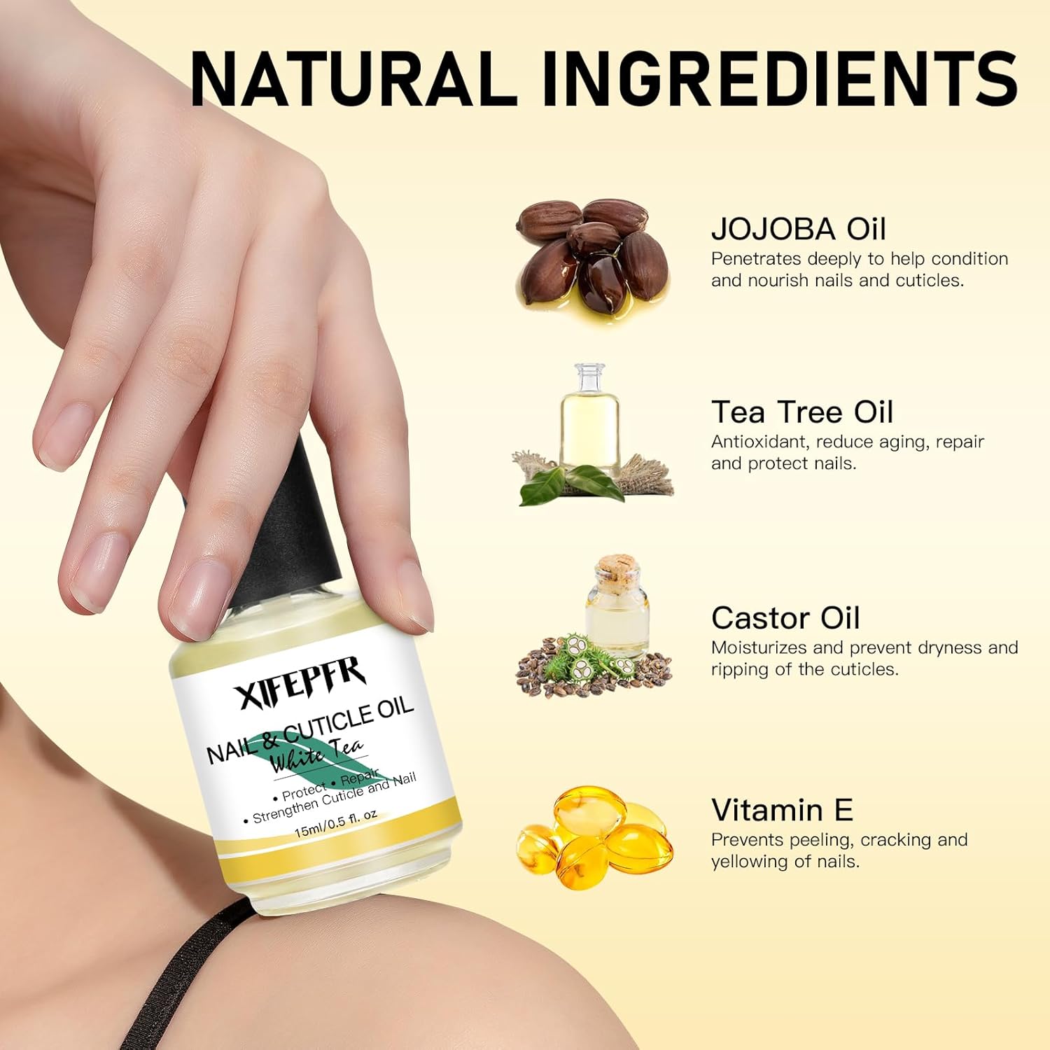 - Nail Cuticle Oil: A high quality nourishing nail oil enriched with a variety of nutrients for cuticle care to soften, moisturize and repair cuticles, effectively improving dry, cracked and brittle nails and promoting nail and cuticle renewal. Apply to the cuticle of nails and massage gently to promote absorption.