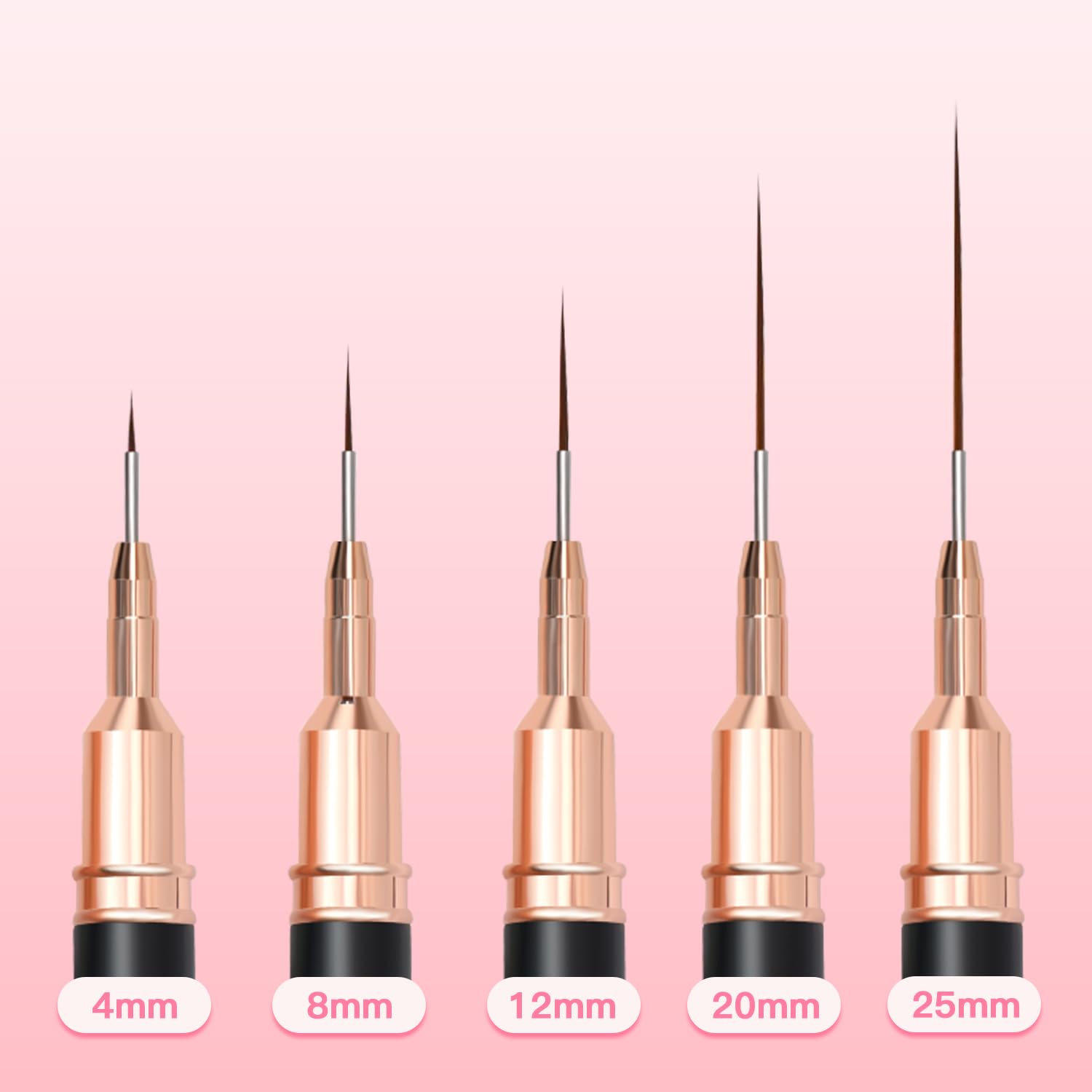 - Professional Nail Art Brushes: The thin nail art brush set contains 5 different size nail brushes 4mm, 8mm, 12mm, 20mm and 25mm. The total length of the pen: approx. 17.8 cm/ 7 inches.