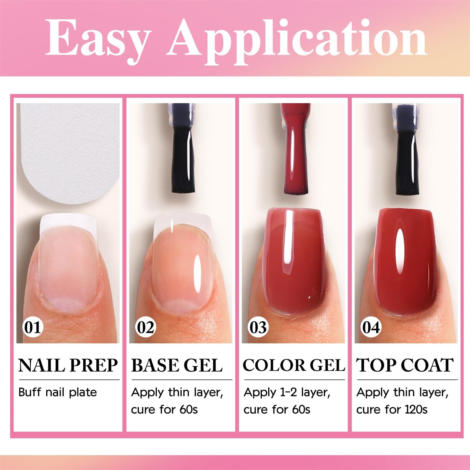 - PREMIUM FORMULA: 9 toxin free ingredient makes it a healthy nail gel with low odor, safe for your nails. No harsh ingredients or adhesives that lead to damaged nails. You can choose our gel nail polish with confidence to do all kinds of nail art styles you like.