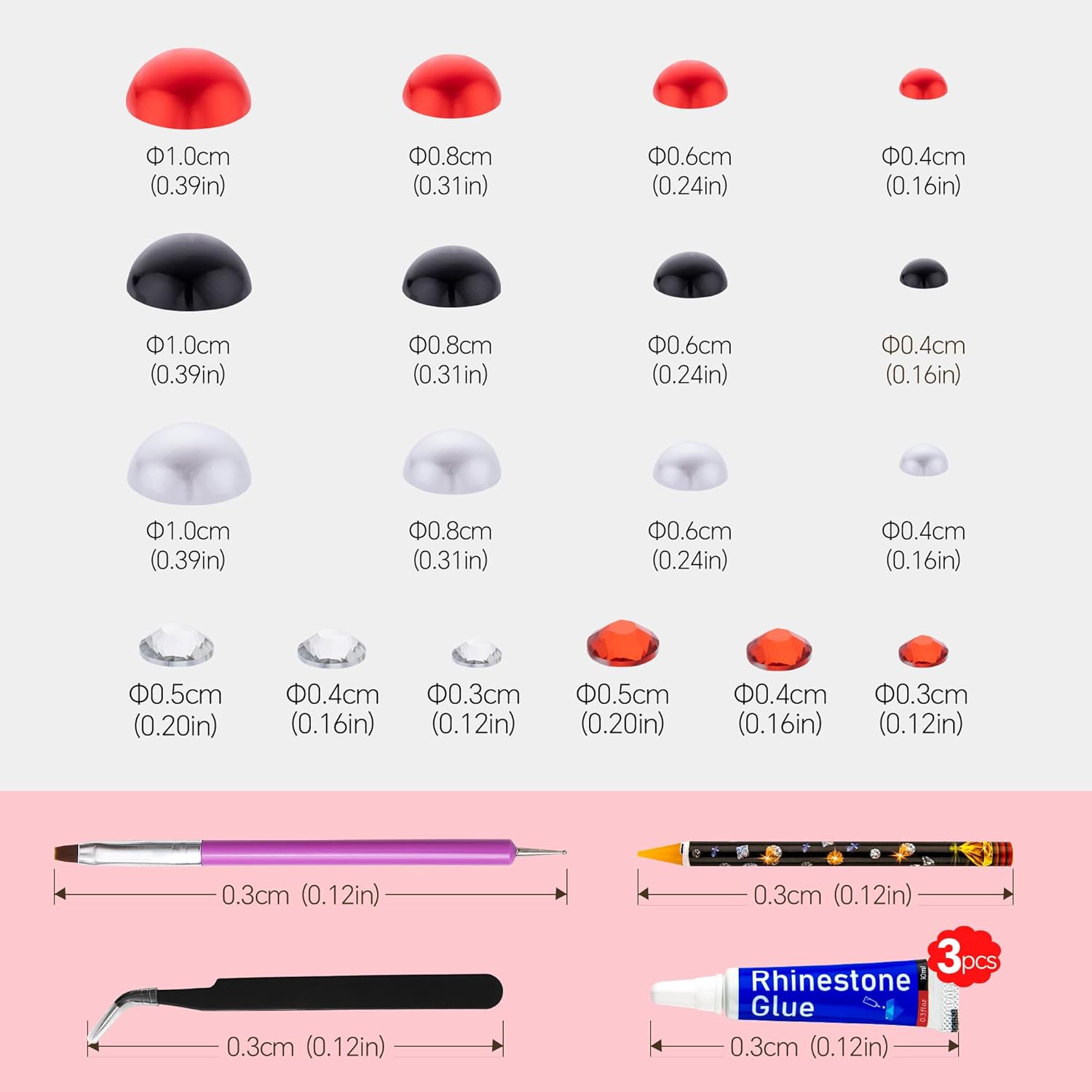 60g Red Black Pearls Rhinestones for Crafts Mixed Size 3mm-10mm AB Color Round Half Pearls Flatback Pearl Beads and Resin Rhinestones Set for Face Art with Gle