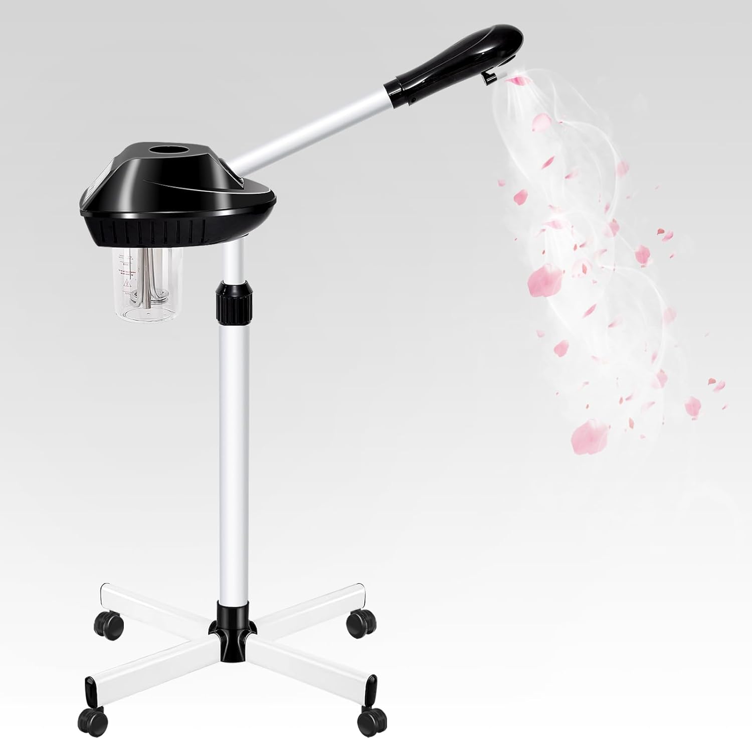 Facial Steamer Professional on Wheels with Time Setting, Estheticians Steamer with More Steam for Deep Cleansing and Hydration, Face Steamer Adjustable Height for Spa, Salon and Home Use