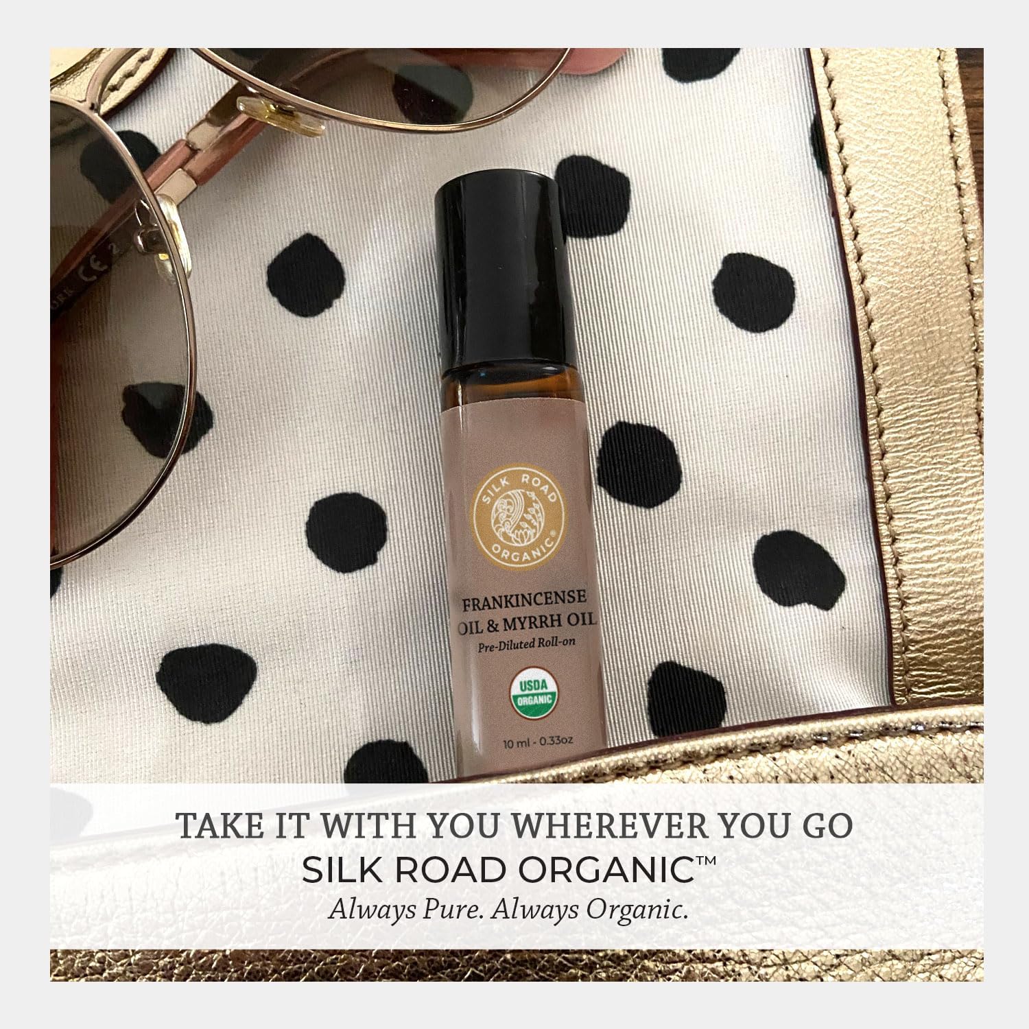 Silk Road Organic Frankincense Oil & Myrrh Essential Oil Roll On, 100% Pure USDA Certified Aromatherapy for Body Aches, Stiffness & Tingling, Stress Relief, & Skin - 10 ml Roller