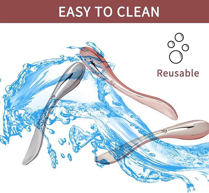 - 2-in-1 Design: This tool features a dual-ended design for maximum versatility. 1 end is a skincare spatula designed specifically for eye massaging, allowing you to apply eye creams, moisturizers, masks, lotions, foundations, and more without using your fingers. The other end is ideal for massaging the product onto your skin, providing a soothing and rejuvenating experience