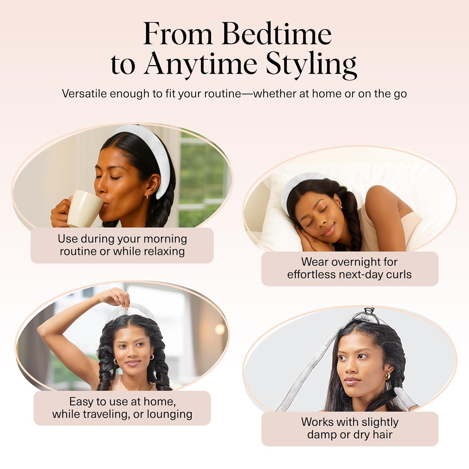 - PERFECT FOR ALL HAIR TYPES: Whether your hair is straight, wavy, long, or medium-length, this versatile overnight curler fits them all! Ideal for teens and adults alike, it’s the best heatless curling solution for achieving salon-worthy curls. Check our size chart for a perfect fit!