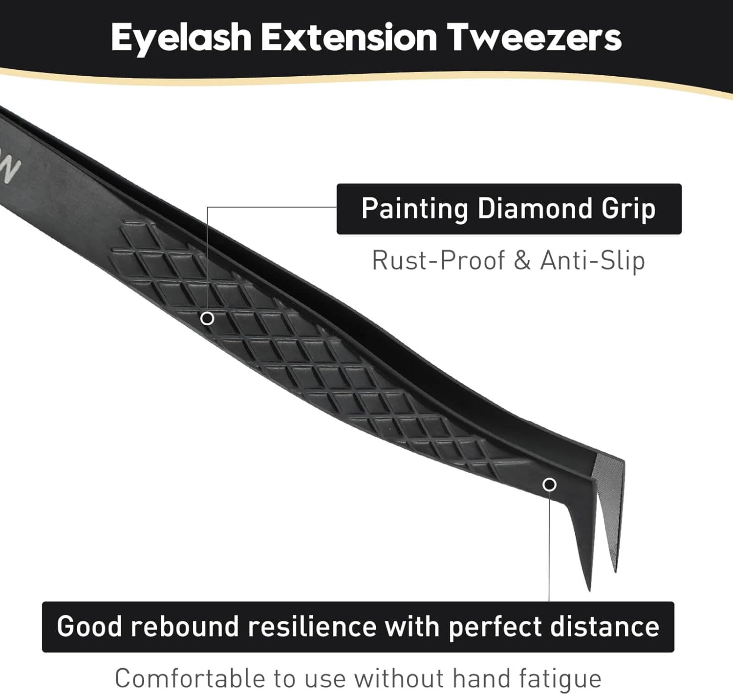 Ms.Queen Fiber Tip Lash Tweezers, Precise Diamond Grip L-Shape Boot Volume Eyelash Extension Tweezers,Black