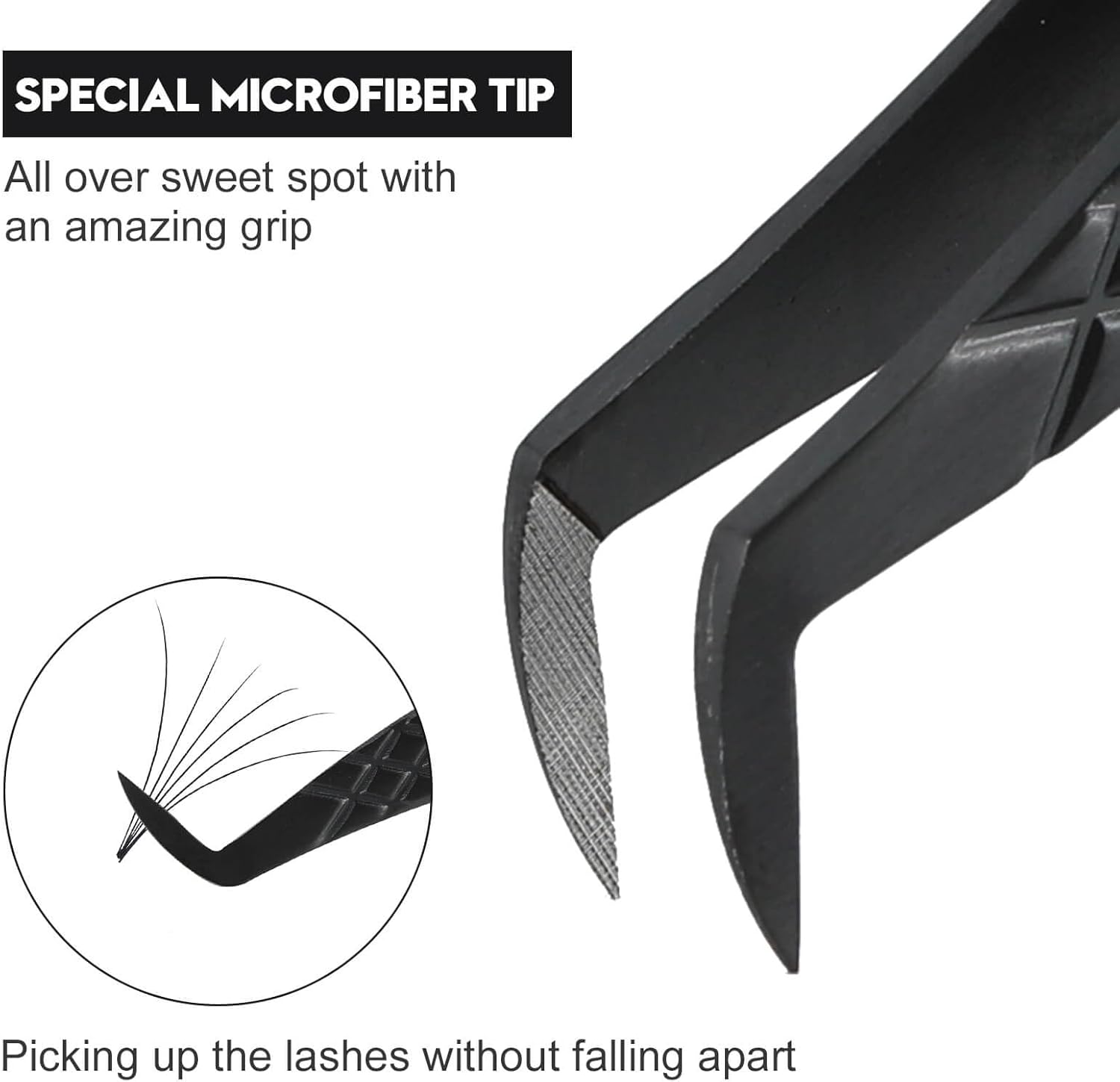 - ★FIBER TIP LASH TWEEZERS:Specifically designed with a microfiber tip Special microfiber tip—All over sweet spot with an amazing grip, picking up the lashes without falling apart.For professional lash artists use & beginner Friendly.