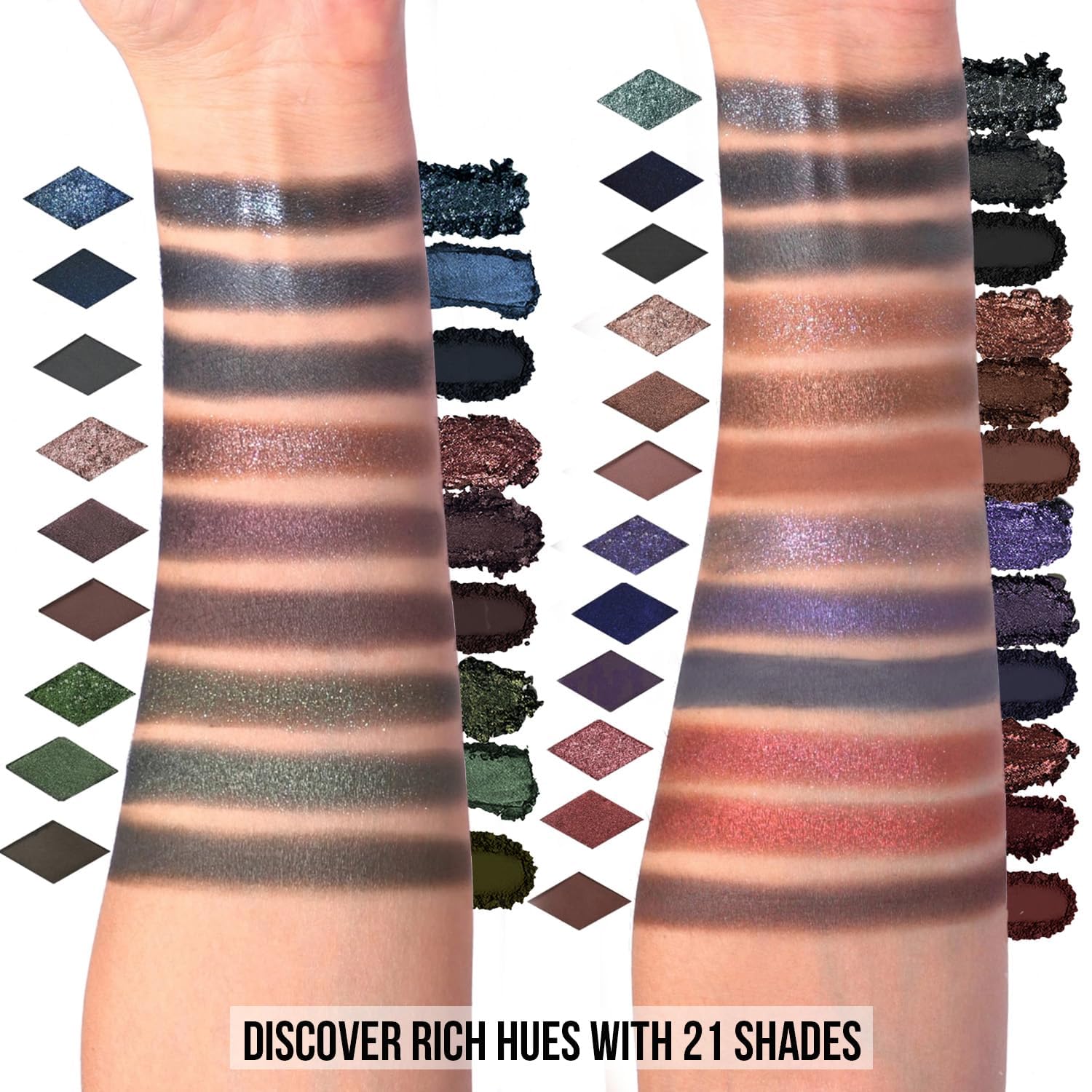 - Suit for all skin tones and makeup: 21 colors SHADES include 7 glitter, 7 shimmer, and 7 matte, High-quality formulas, that suit any skin tone, from light to dark; With this dark eyeshadow, can switch up your look from natural and brown to bold smokey.