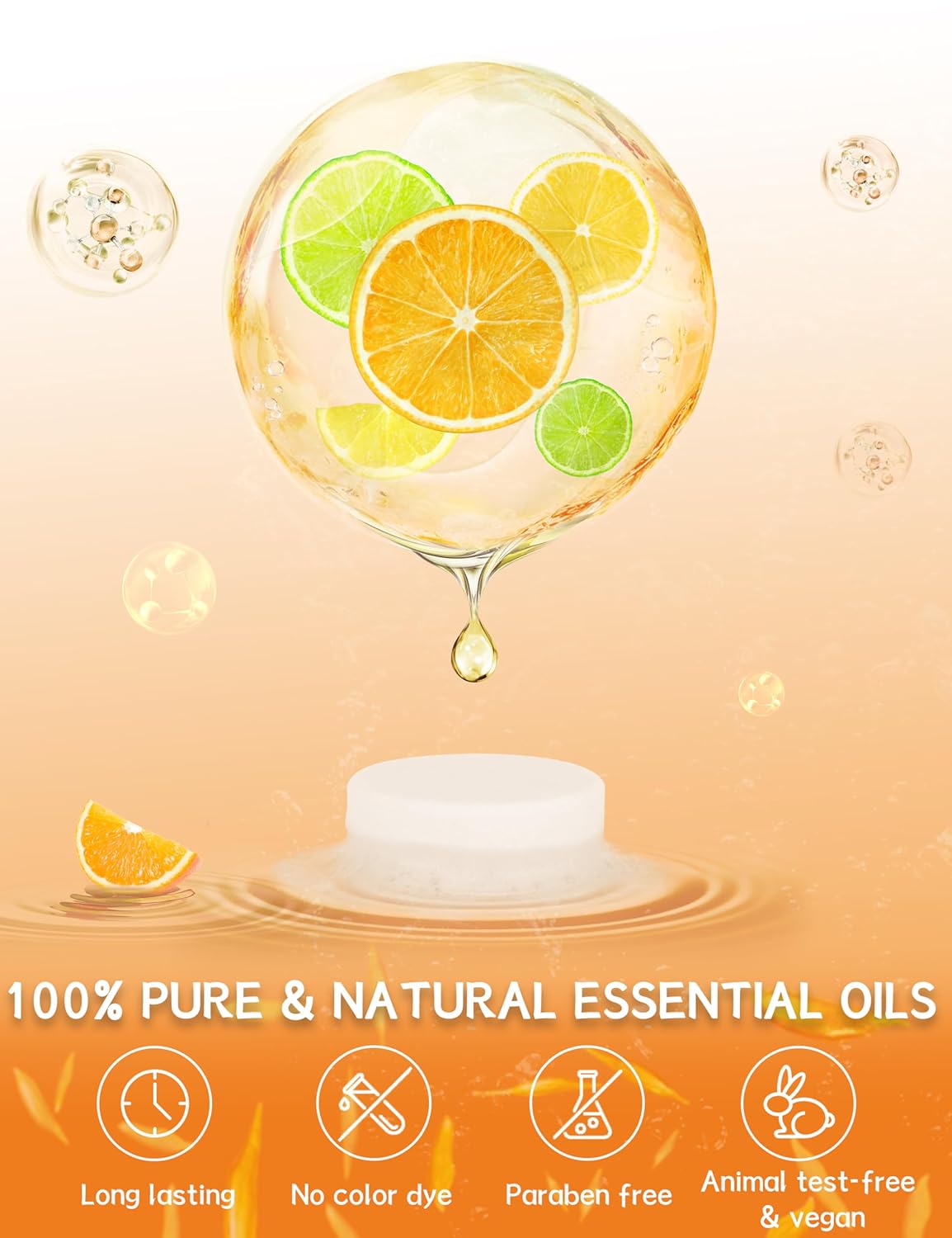 - Indulge in Nature's Goodness: Immerse yourself in the rejuvenating power of our shower steamers infused with 100% all-natural & organic Tangerine and Lemon essential oils. Experience the benefits of our exclusive time-release technology, which ensures extended usage and clean dissolving, without leaving any residue behind. Boost your mood, relieve stress, and indulge in a truly invigorating aromatherapy experience