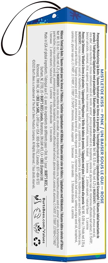 Burt's Bees Mistletoe Kiss Pink, Pomegrante, Peony, Hibiscus Lip Balm and Shimmer Holiday Collection Gift Set of 3-1 Count