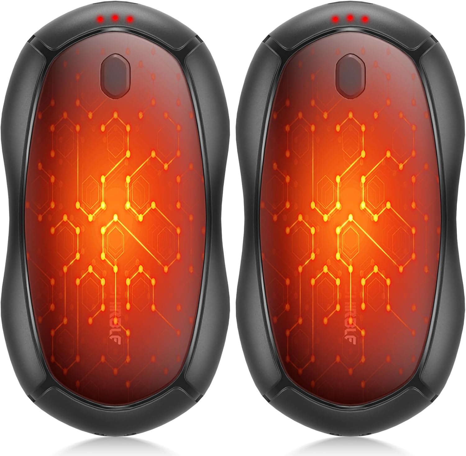 - 【Battery Level Alert】Double tap the on button at the top of the rechargeable heater to check the power level. When the handwarmer is low on power during use, the indicator lights on both sides of the on button will blink to indicate this. Remind to charge in time for next use.