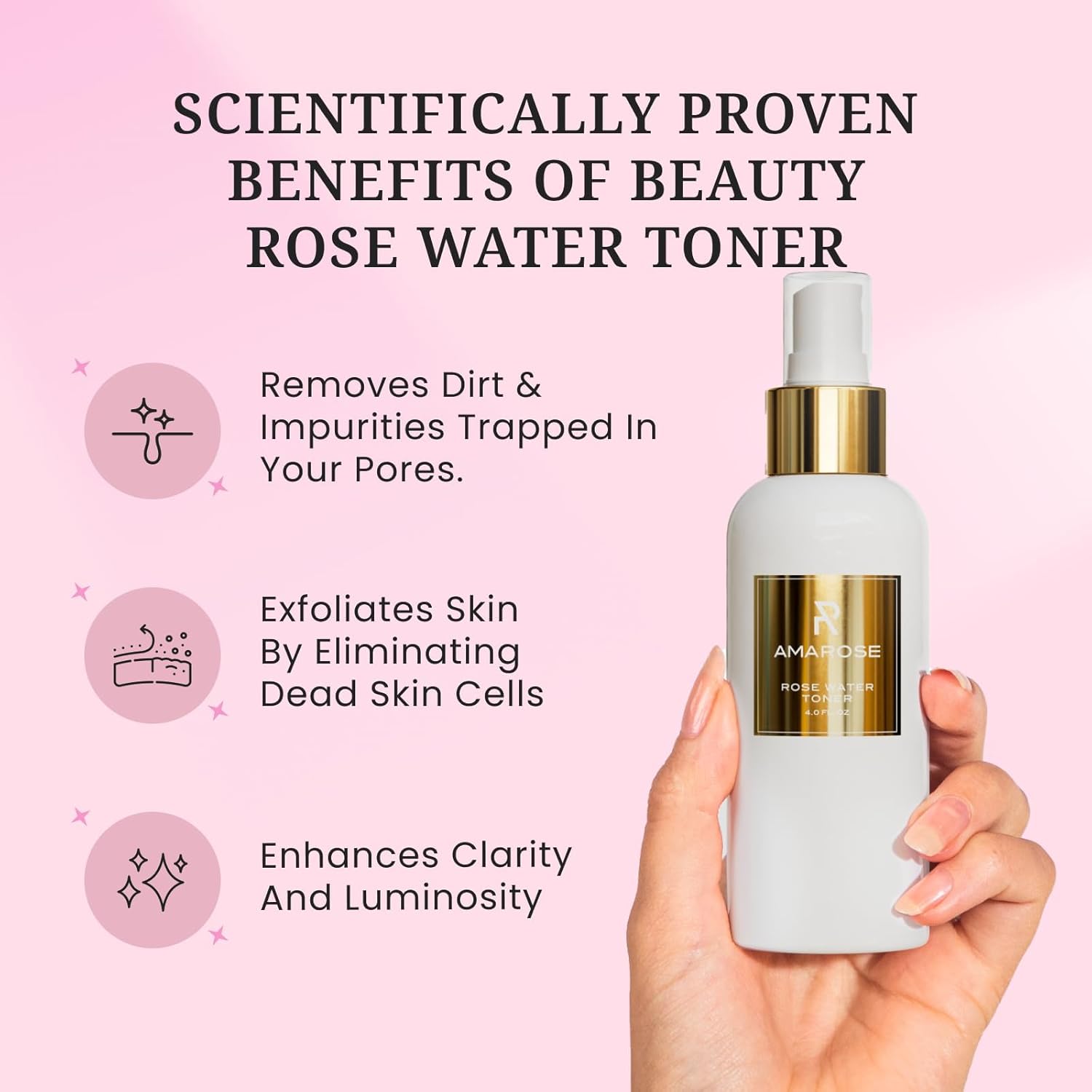 - SOOTHING TONER: Elevate your skincare routine with the luxurious Amarose rosewater face mist. Immerse yourself in the soothing essence of rose water, renowned for its calming properties.