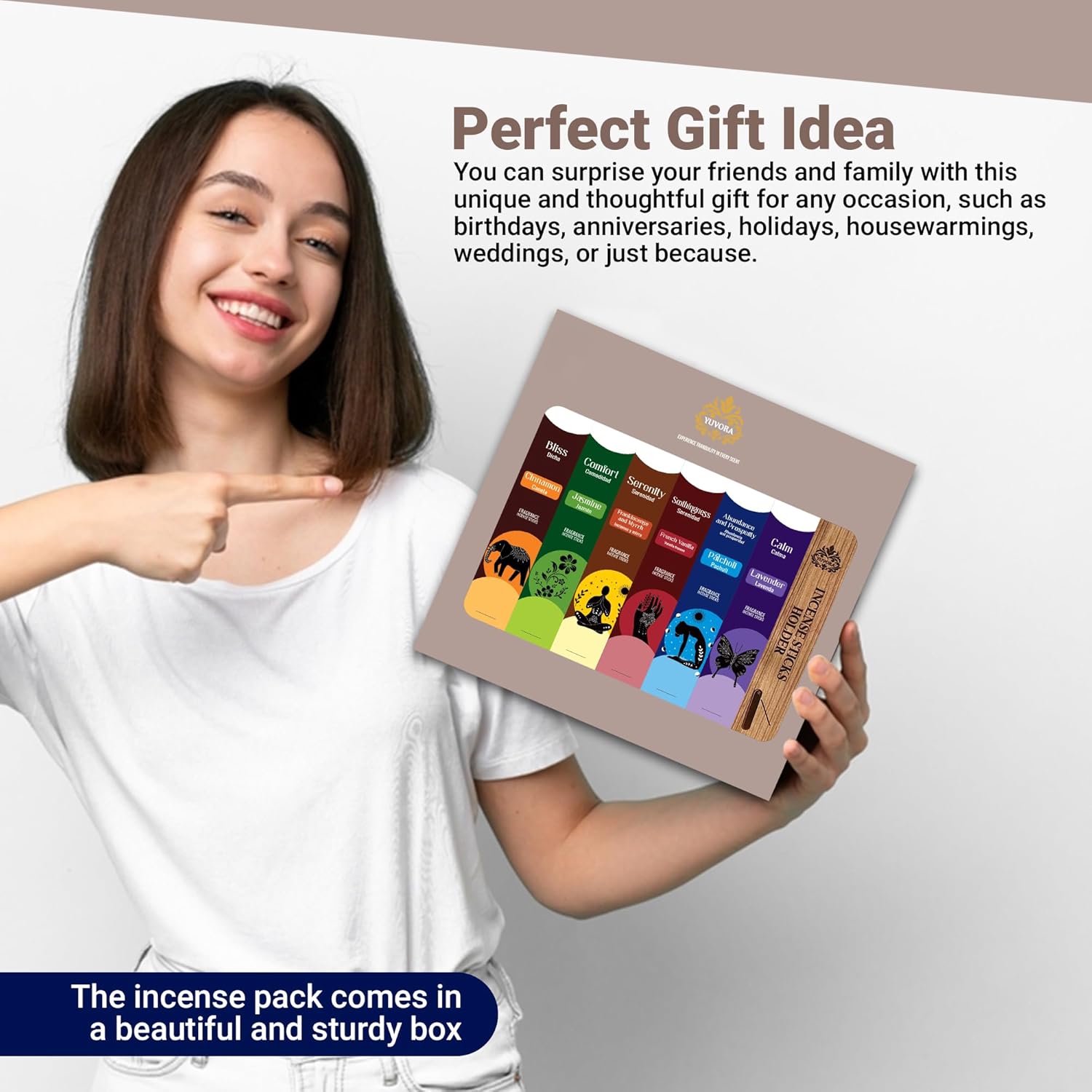 Aromatic Incense Sticks Gift Set – 120 Natural & Non-Toxic Incense Sticks | 6 Soothing Scents | Home, Meditation, Relaxation & Yoga | Free Incense Holder | Inciensos - Gifts for Women