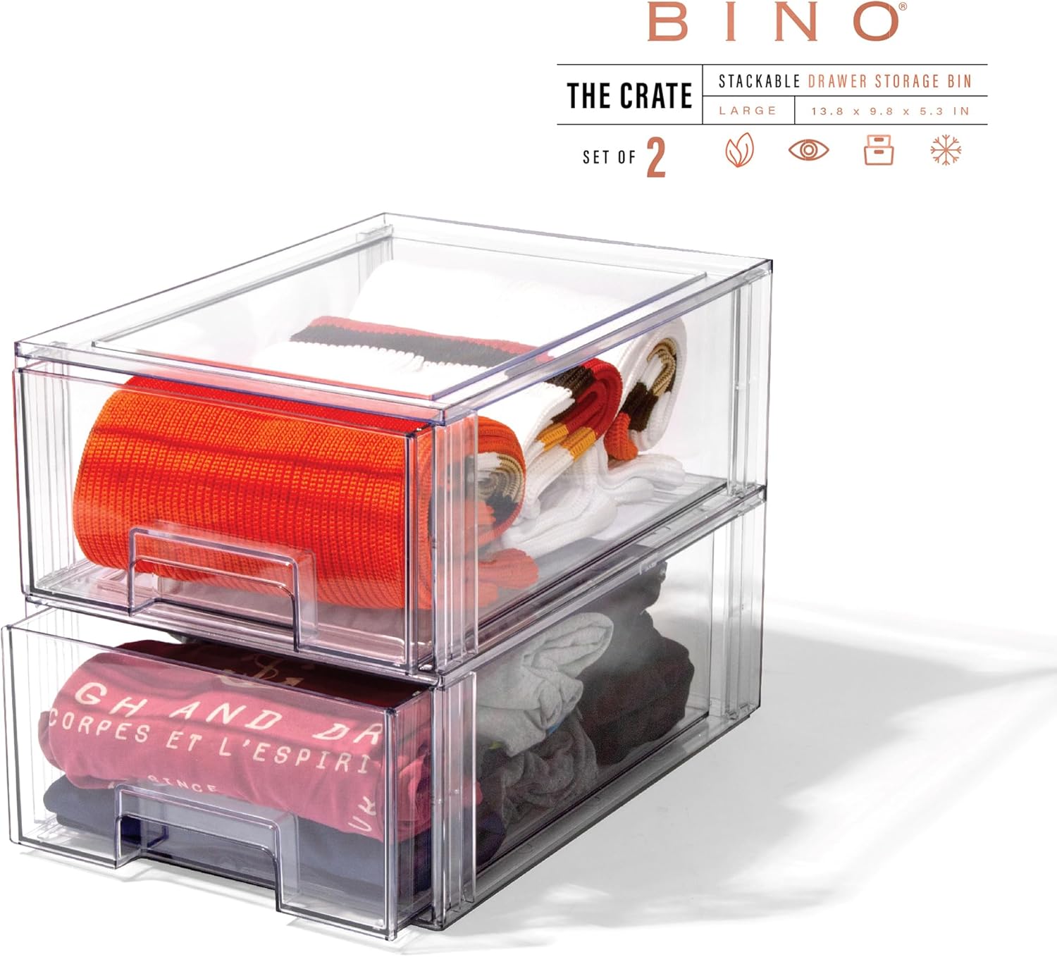 - Versatile Home Organizer: Say goodbye to clutter in every room of your home. From the bedroom to the kitchen, BINO's multi-purpose clear storage bins offer space-saving solutions that help you maintain a tidy and organized living environment. Streamline your home with these versatile and elegant storage drawers.