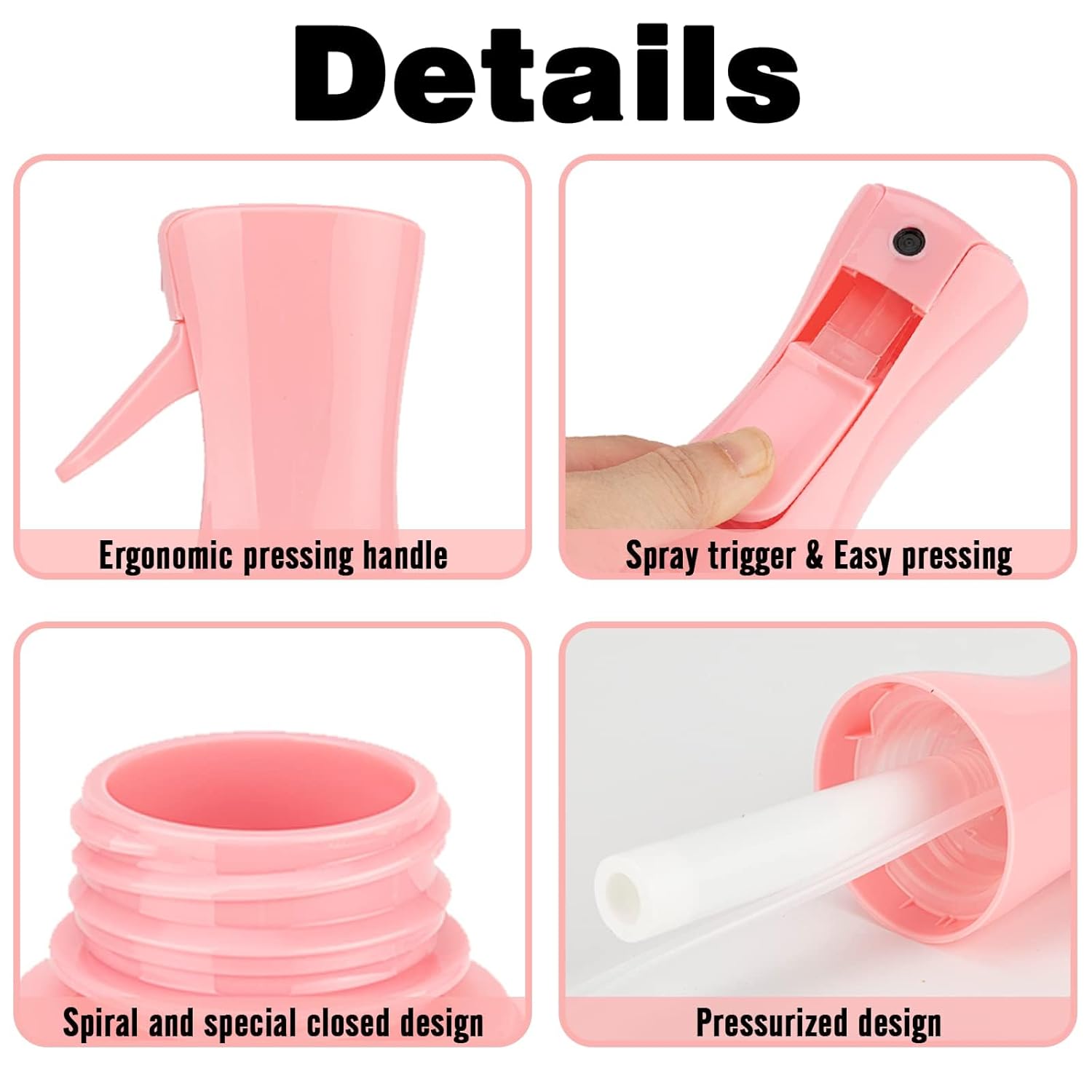 Spray Bottle for Hair (6.8OZ /200ML) Continuous Ultra Fine Mist Sprayer for Hair, Salons, Barber, Plants, Skin Care, Cleaning 2 Pack Pink