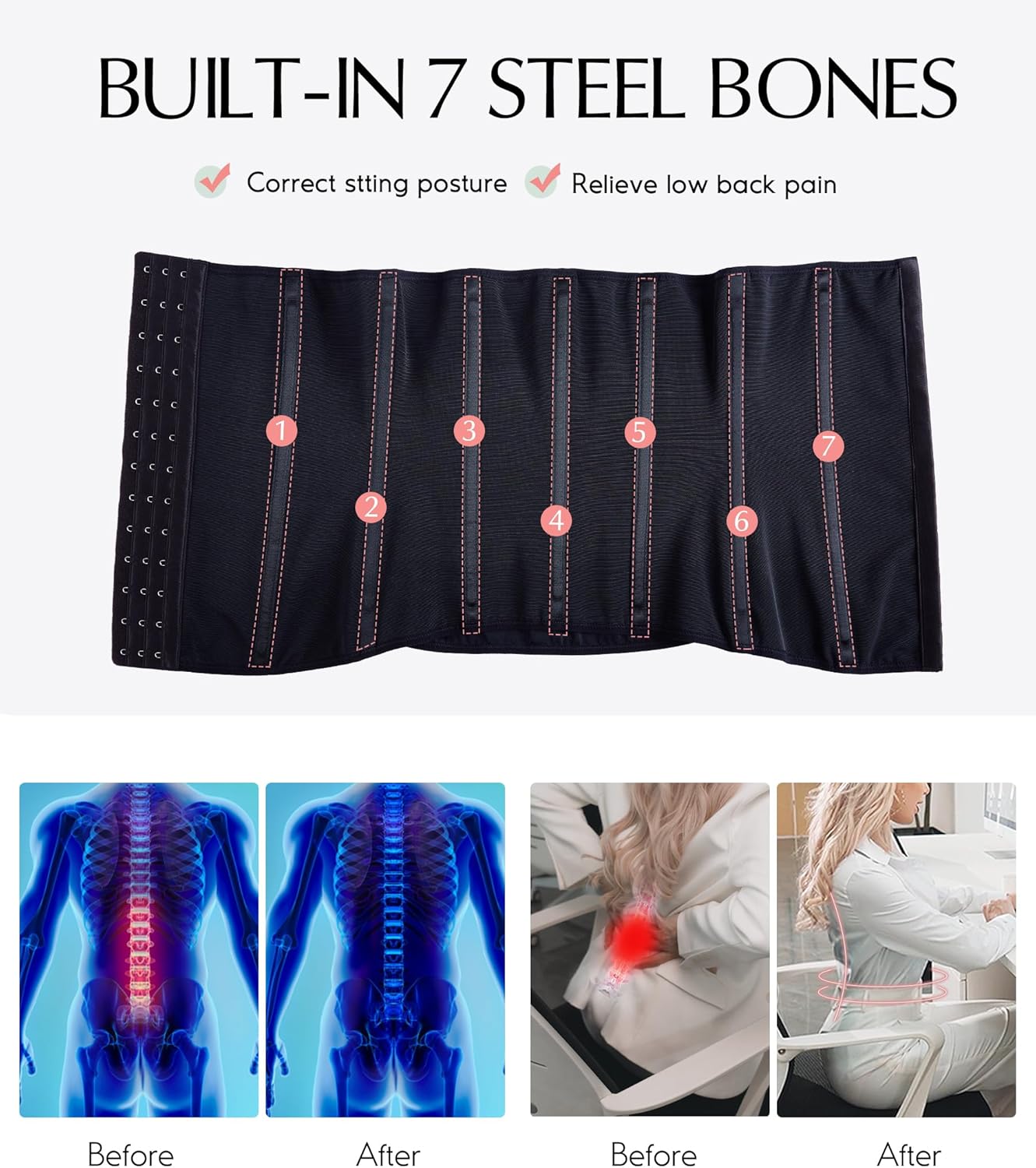 • STRONG SUPPORT LOW BACK SHAPEWEAR: The shapewear for women tummy control equips with 7 spiral steel bones fitted to curve naturally, encouraging an upright posture all time without rolling up and down, no matter you're doing housework, working, or exercising. Back fat shapewear provides all-around support and pressure to the waist area, control the flabby back, evenly distribute pressure along the back to relief back pain and improve hunchback, so as to achieve a more elegant appearance.